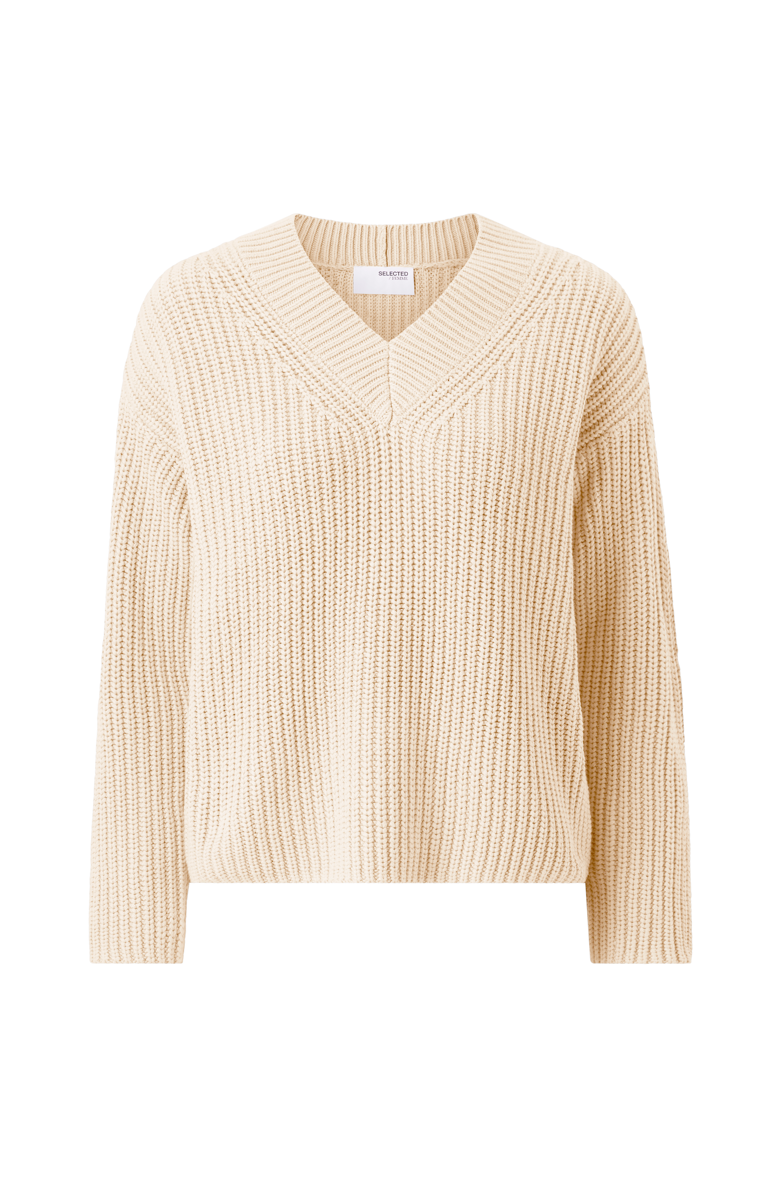 • Stickad tröja i bomullsmix• V-ringning• Nerhasade axlar