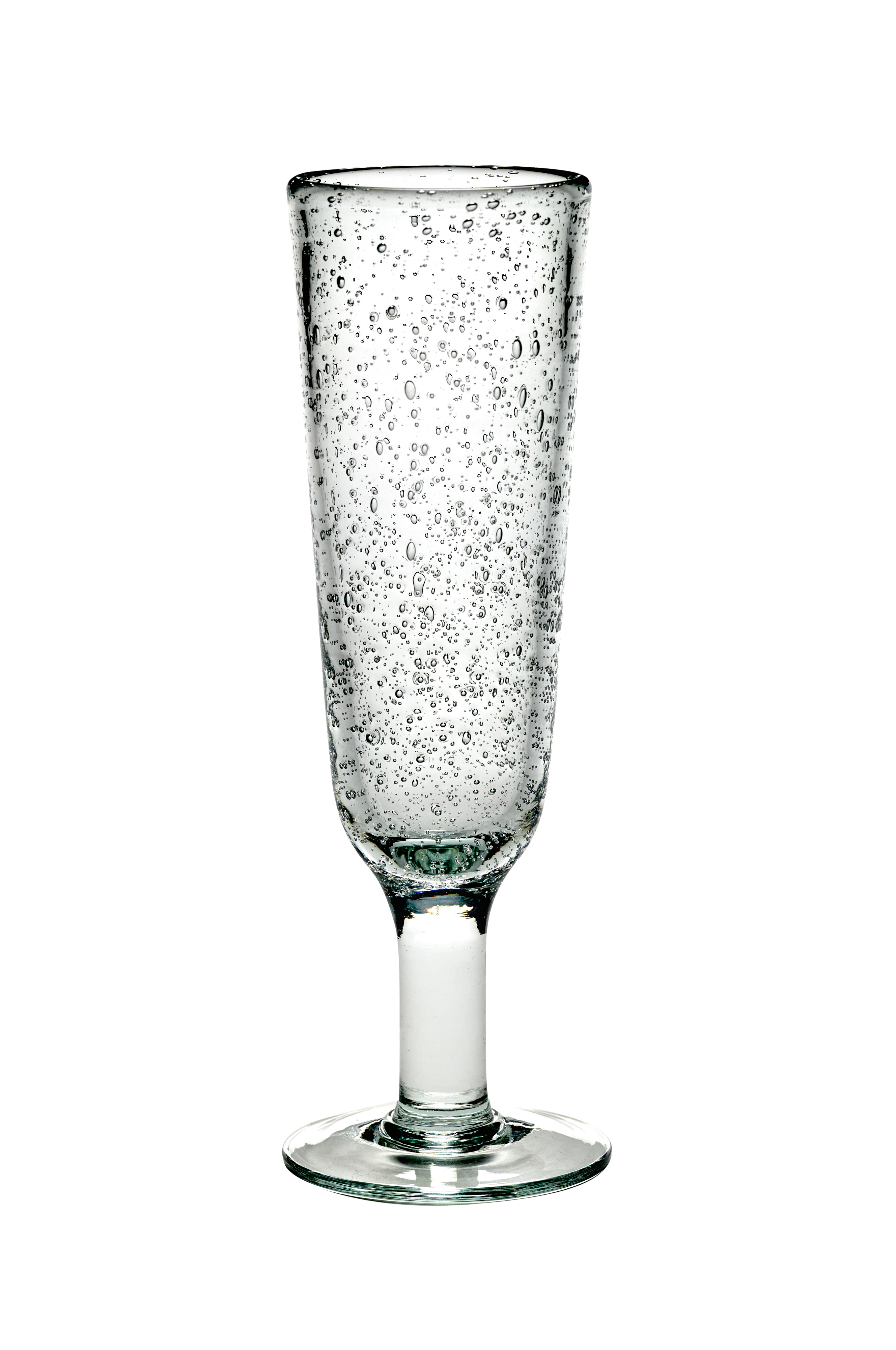 Att skapa en vänlig atmosfär där alla omedelbart kan känna sig hemma och bekymmersfria... Efter framgången med sin serie bordsserviser visar Pascale Naessens återigen sitt perspektiv på njutning, den här gången genom en ny serie glas och bestick. Glasen, som sträcker sig från vin- och champagneglas till vattenglas med matchande karaff, är alla inspirerade av hennes förkärlek för egyptiska glas, som är allmänt kända för sina karaktäristiska bubblor.