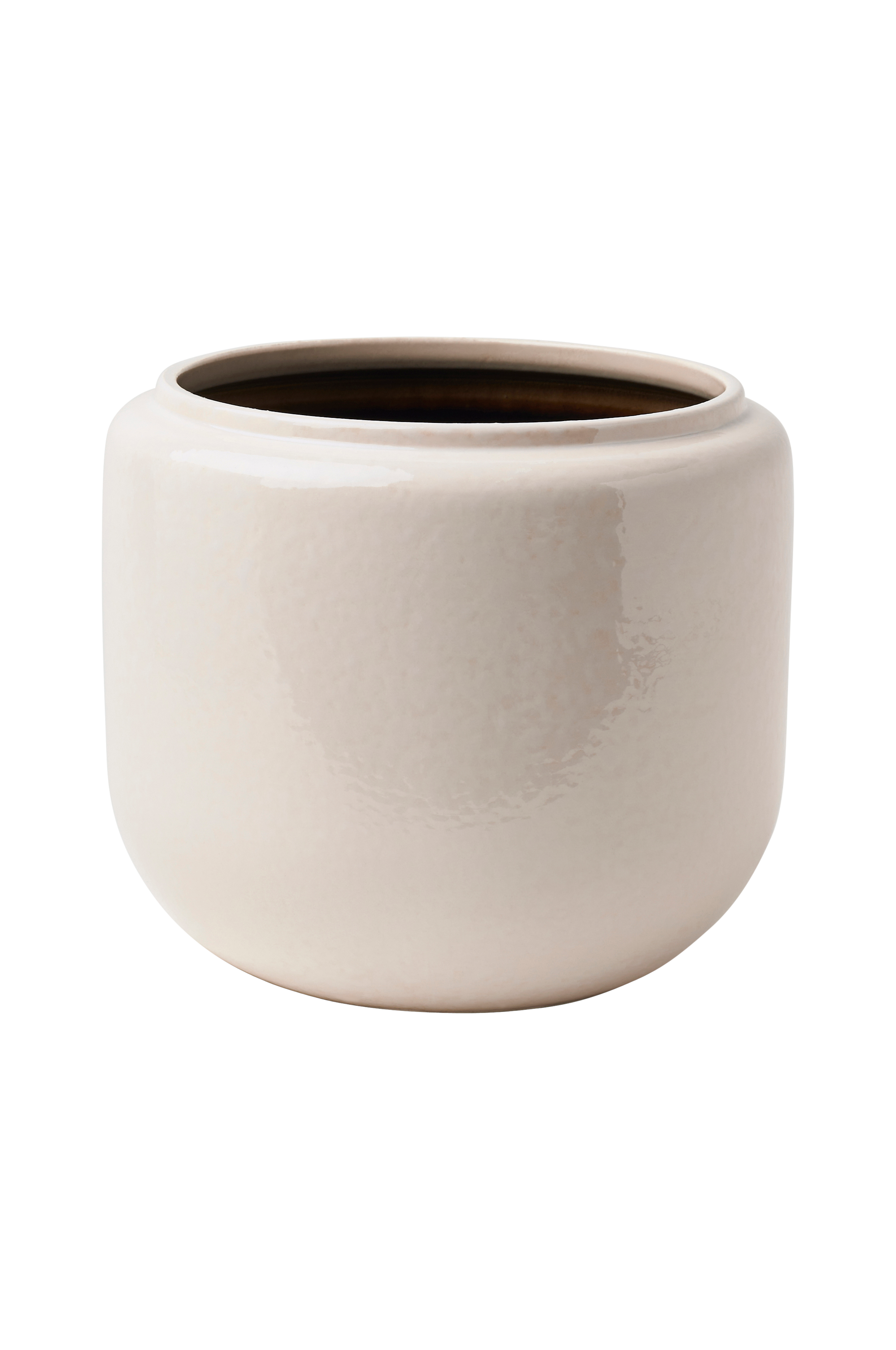 Mått: 18,5 cm i diameter och 19 cm hög. Material: keramik. Skapad av lera, försedd med blank glaserad yta och en retroinspirerad finish.