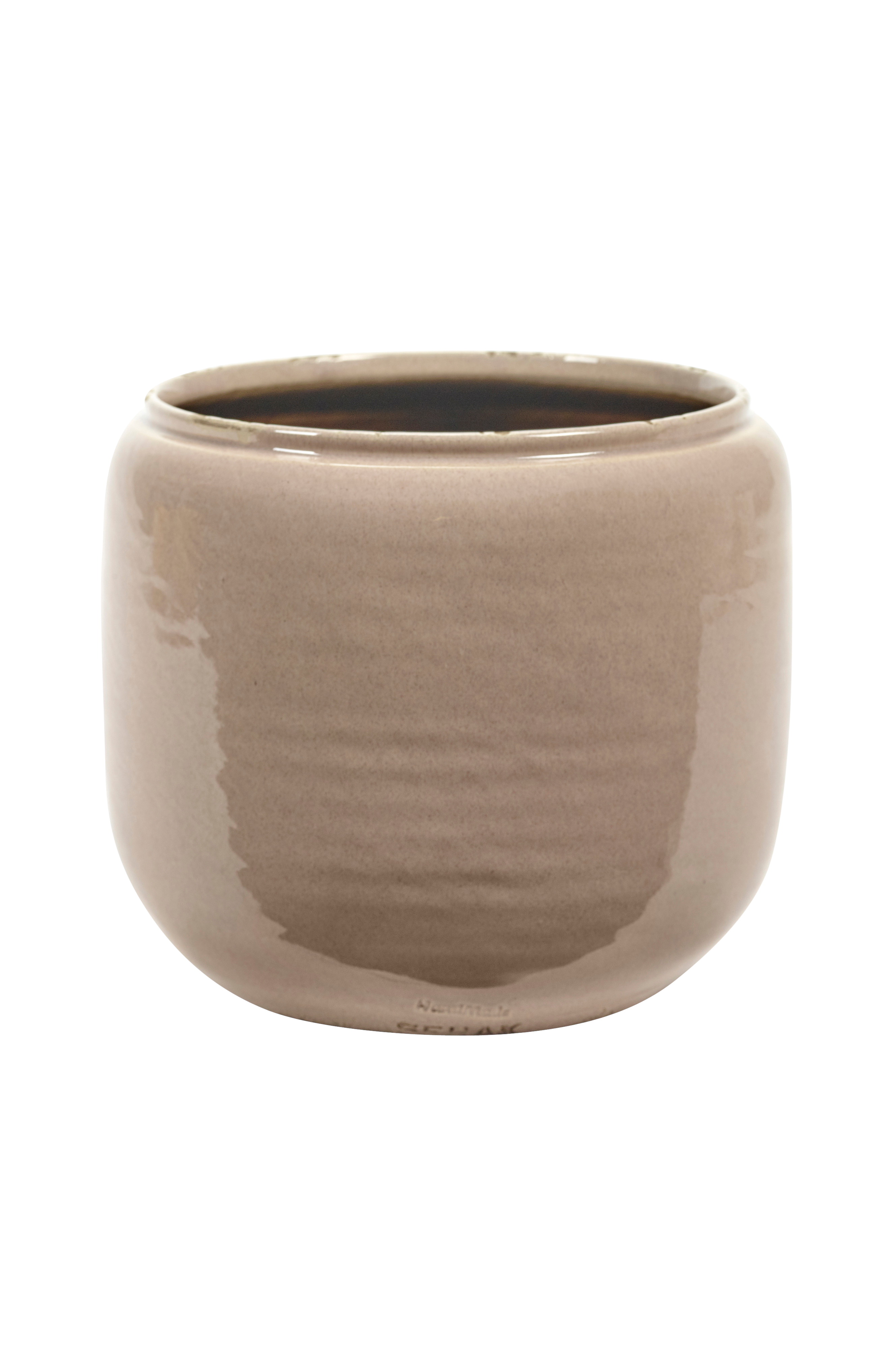 Kruka Costa S är tillverkad i terrakotta med en glänsande glasyr och ett lätt patinerat avslut upptill och nertill. Denna variant mäter 19 cm på höjden och 18,5 cm i diameter.