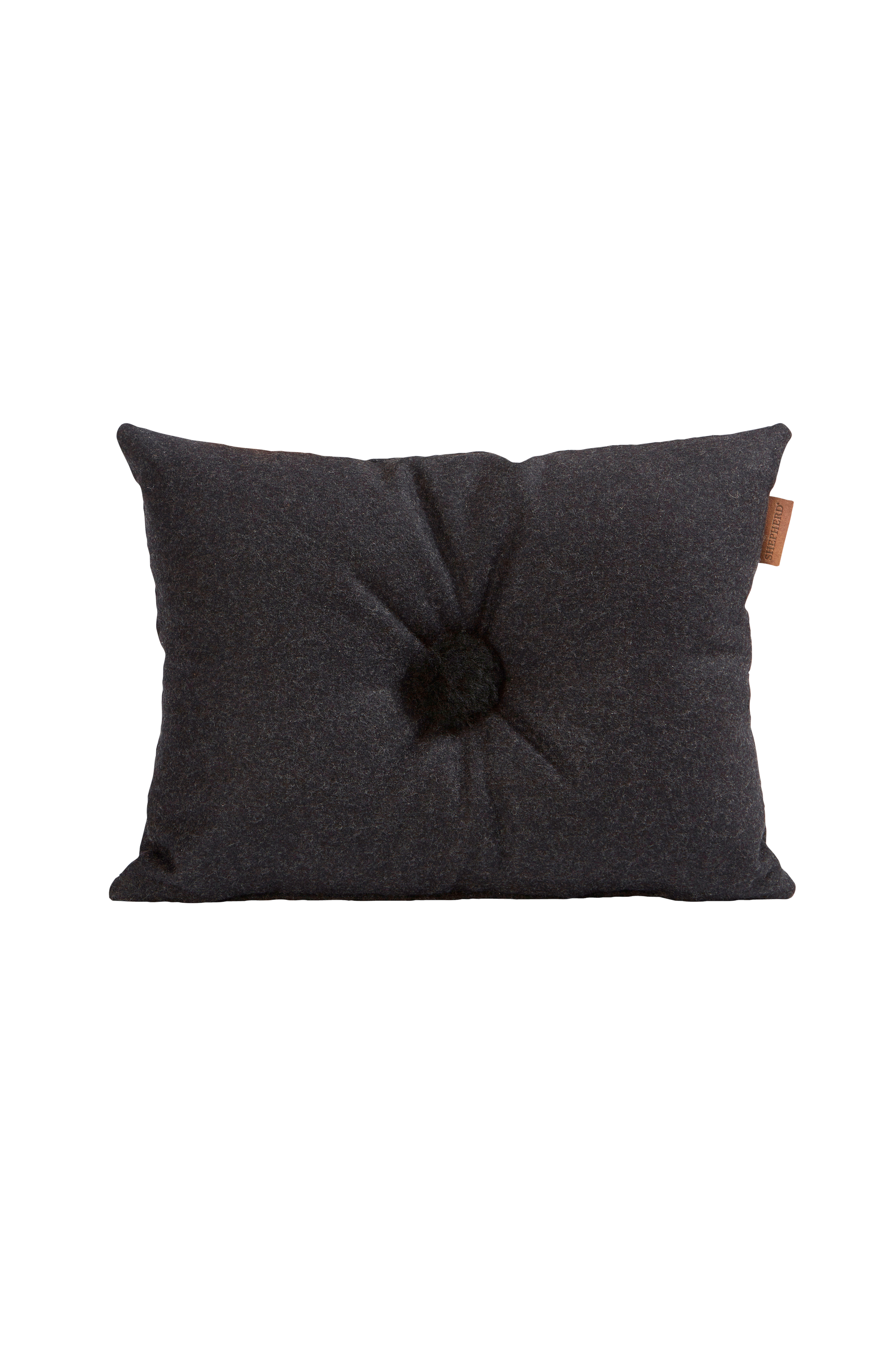 Shepherd anita. En kudde i mjuk vävd ull med en dekorativ knapp i fårskinn. Fyllning i polyester.