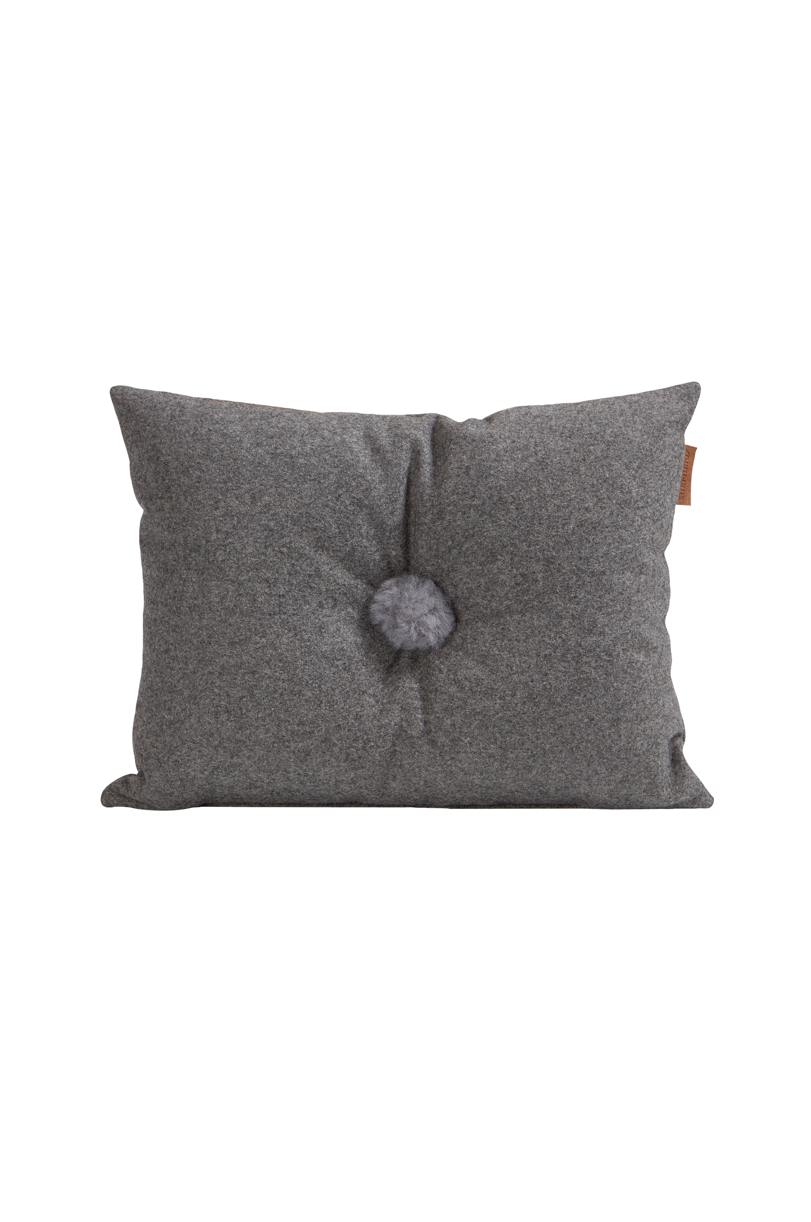Shepherd anita. En kudde i mjuk vävd ull med en dekorativ knapp i fårskinn. Fyllning i polyester.