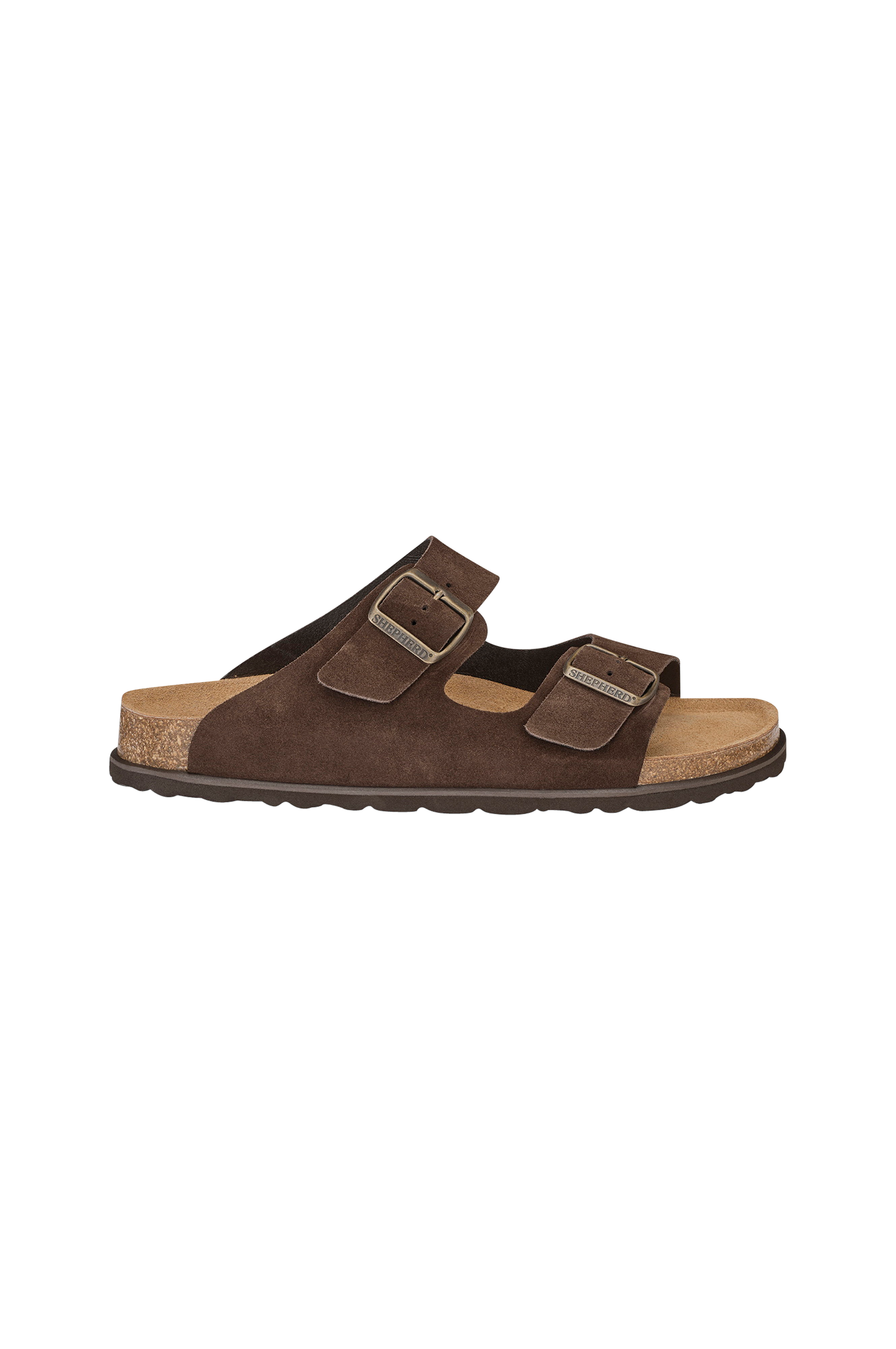 Shepherd cassandra är en bekväm sandal med två remmar med justerbar passform, en anatomiskt formad fotbädd och en tidlös design. Den klassiska silhuetten kombinerar naturmaterial med genomtänkt designad komfort. Ovandelen formar sig efter foten och låter den andas, medan den mockaklädda korkfotbädden ger ett stabilt och flexibelt stöd. Yttersulan i eva ger en lätt och dämpad känsla i varje steg.
