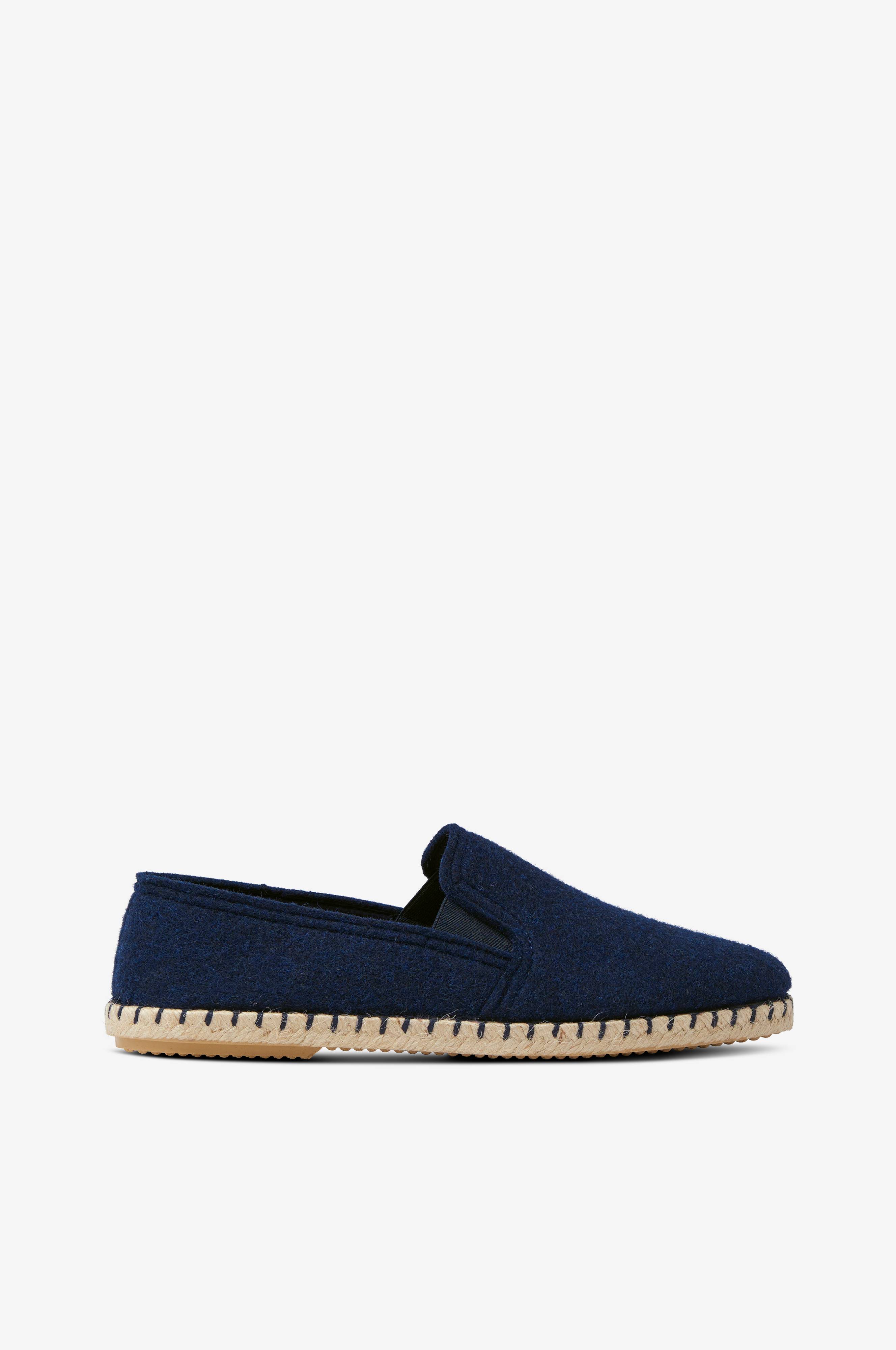 Slip on-modell i ullkvalitet med resårinfällningar i sidorna och mjuk innersula i skin. Repsulkant med broderier och yttersula i gummi.