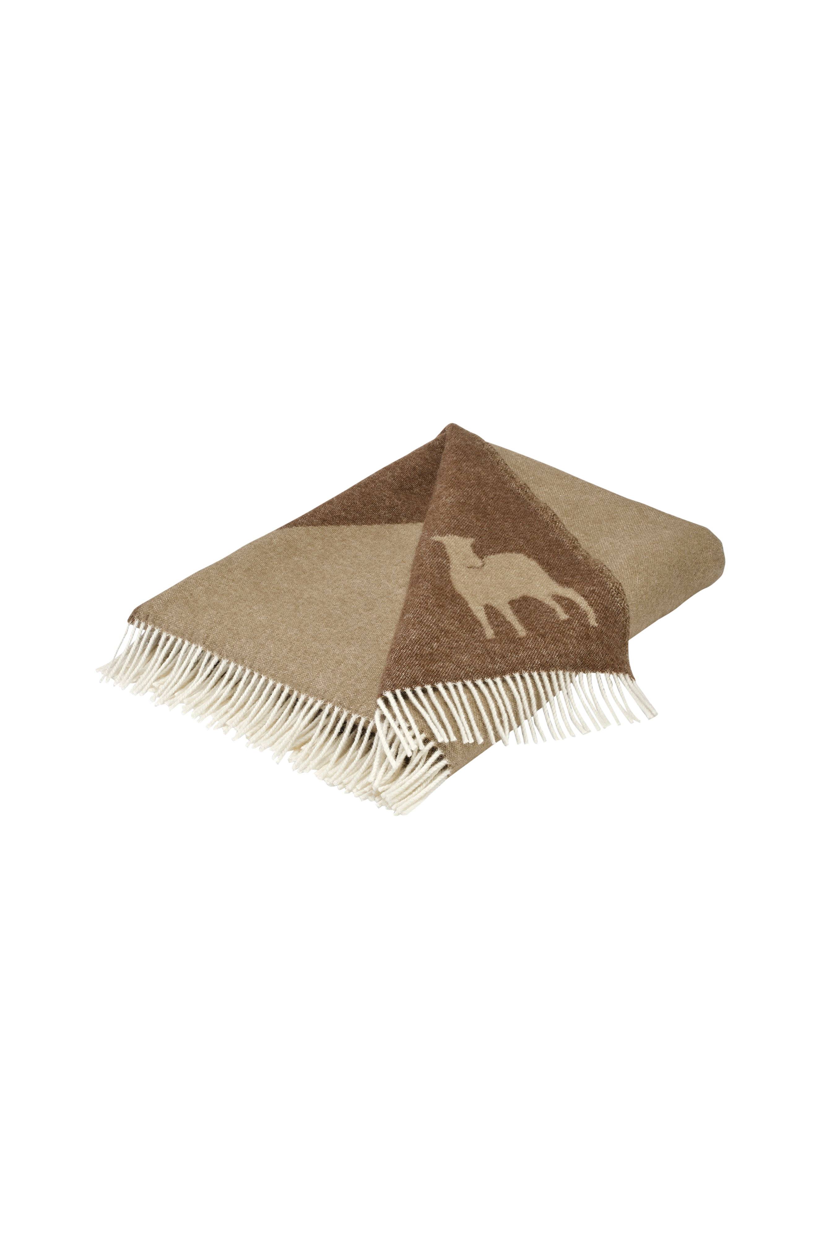 Jacquardvävd filt tillverkad av värmande ull. Mönstrets färger speglas på motsatt sida. Fransar längs de kortare kanterna. Längd: 140 cm & bredd: 240 cm