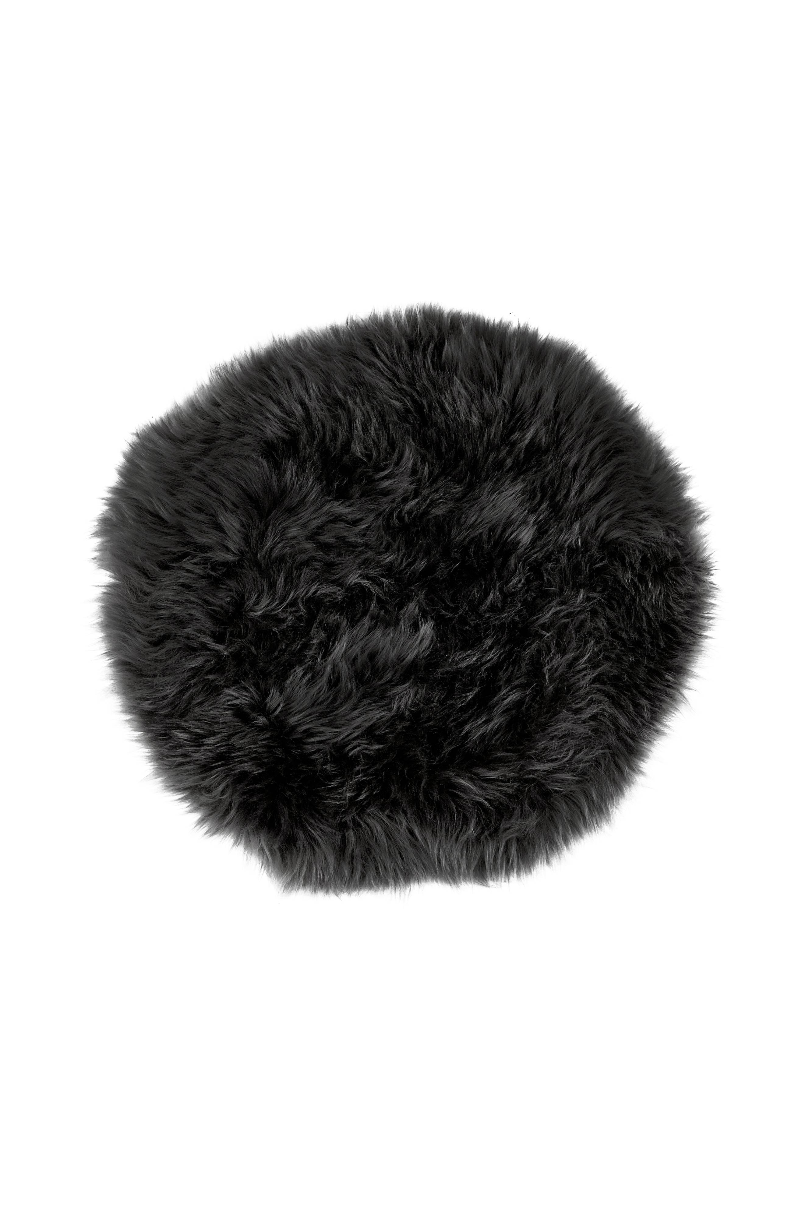 Shepherd molly. En mjuk stolsdyna tillverkad av långhårigt fårskinn. Alla fårskinn är naturskinn och kan därför varieras utifrån sin naturliga struktur. Undersida i ofärgat läder. 36 cm ø