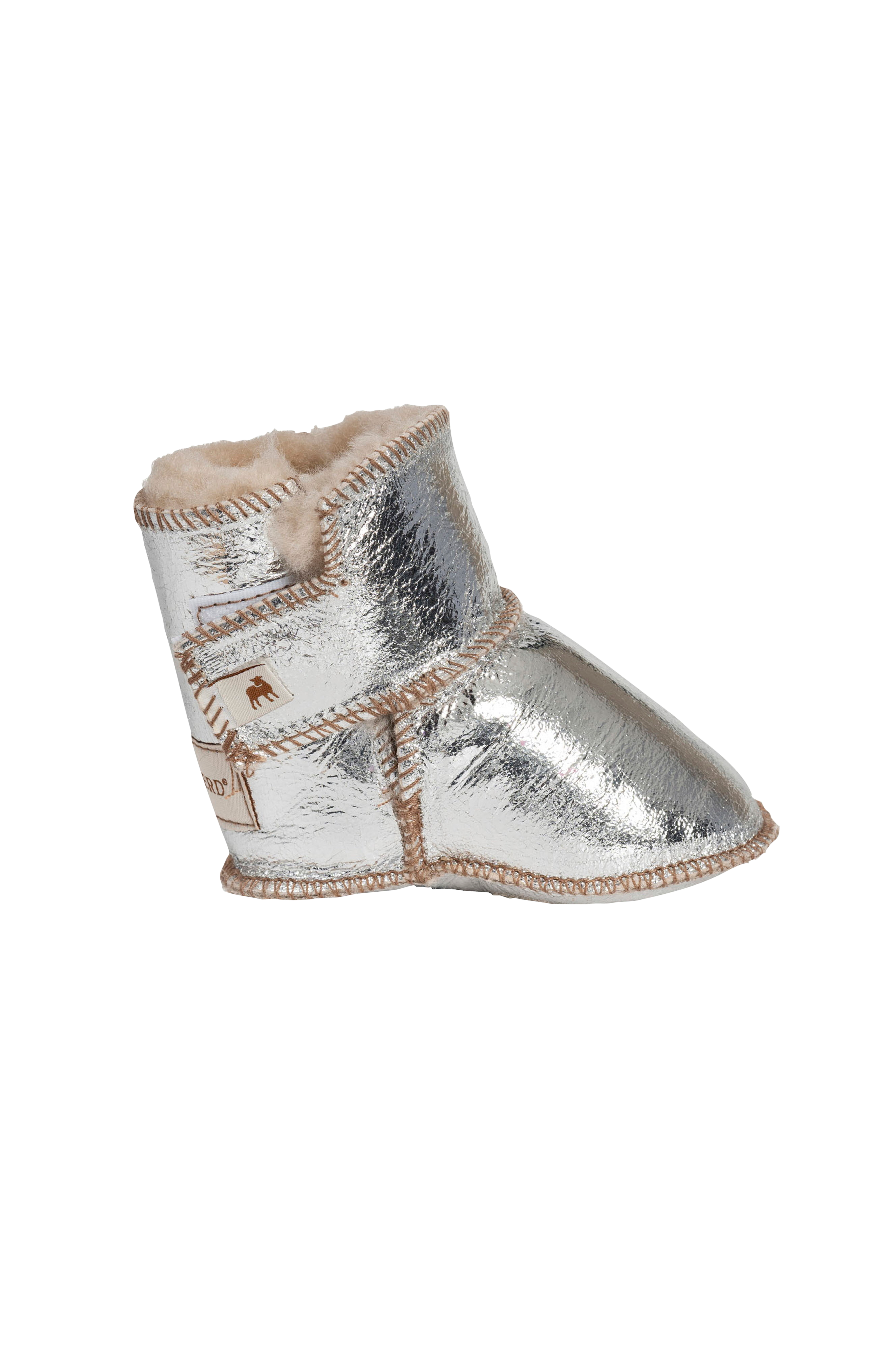 Shepherd Borås är ett par varma babytofflor i fårskinn. Tofflorna är i ankelhög modell med reglerbar kardborreknäppning vid sidorna vilket gör att den sitter ordentligt på plats och är lätt att ta på och av. Mjuk sula i mocka.