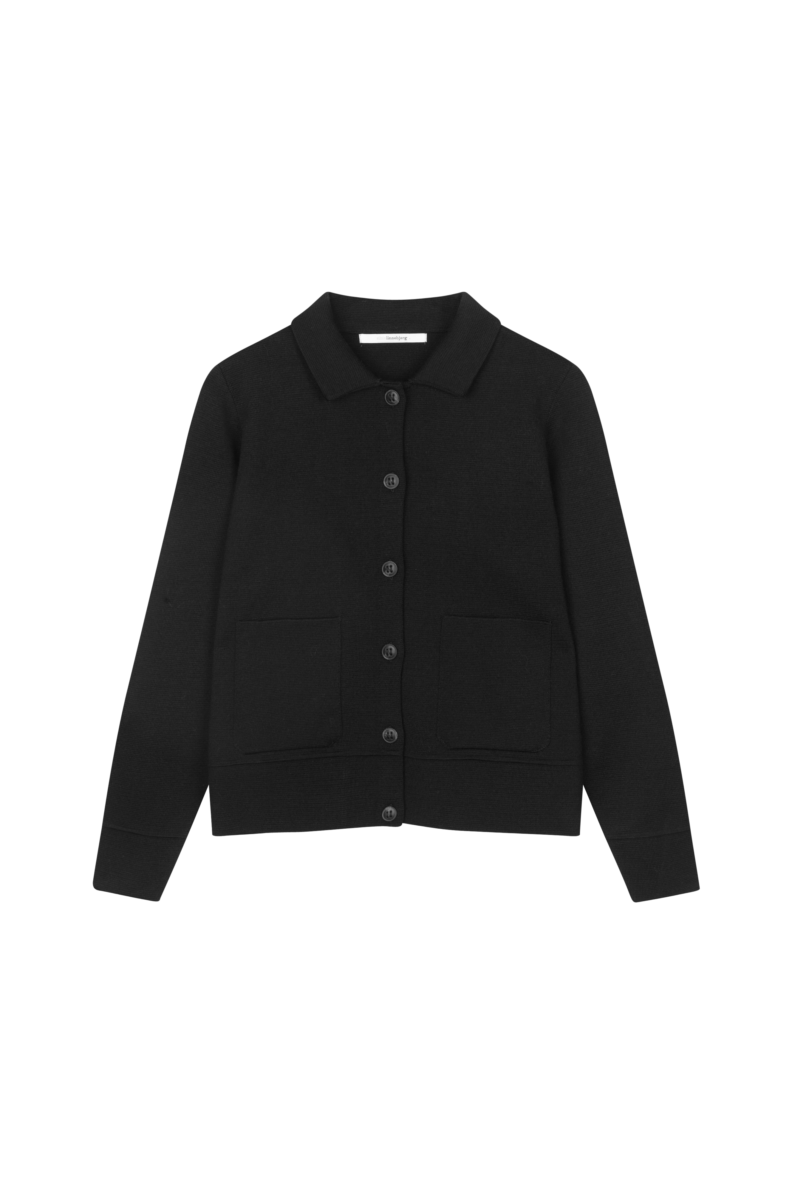 • Finstickad cardigan i merinoullblandning med krage