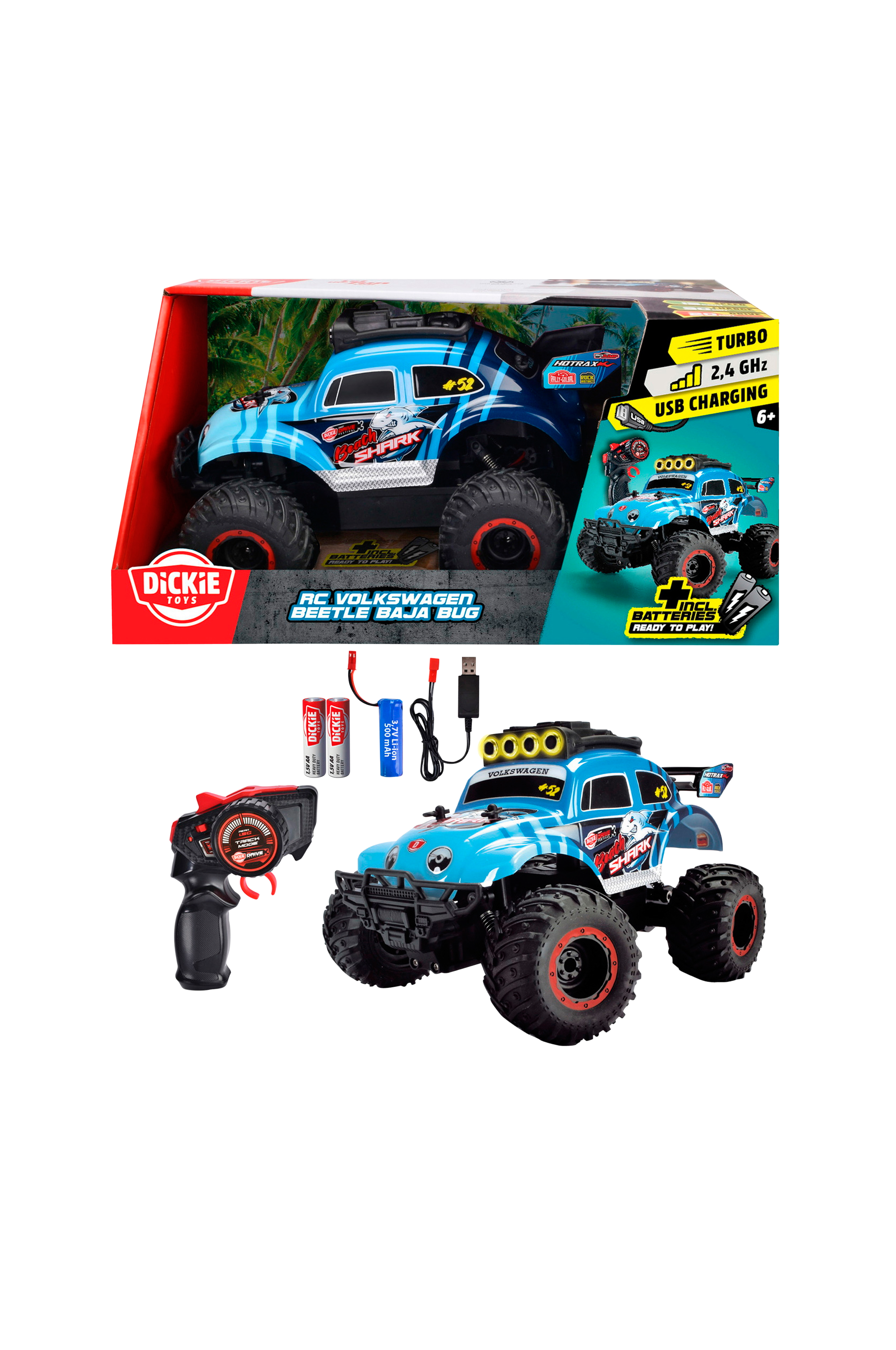 Med en storlek på 23 cm är denna radiostyrda bil perfekt för både inomhus- och utomhusbruk. Ge ditt barn möjligheten att upptäcka världen av radiostyrda bilar med Dickie Toys Volkswagen Beetle Baja Bug!