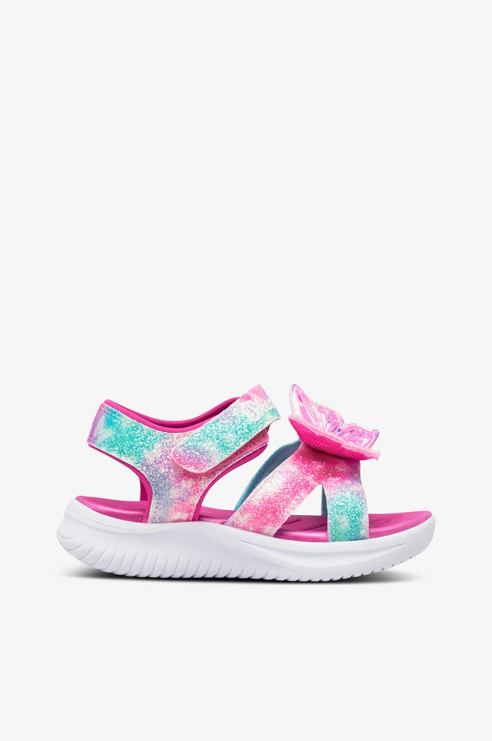 • Glittriga remmar i textil och syntet• Dekorativ, blinkande fjäril• Justerbar kardborrerem