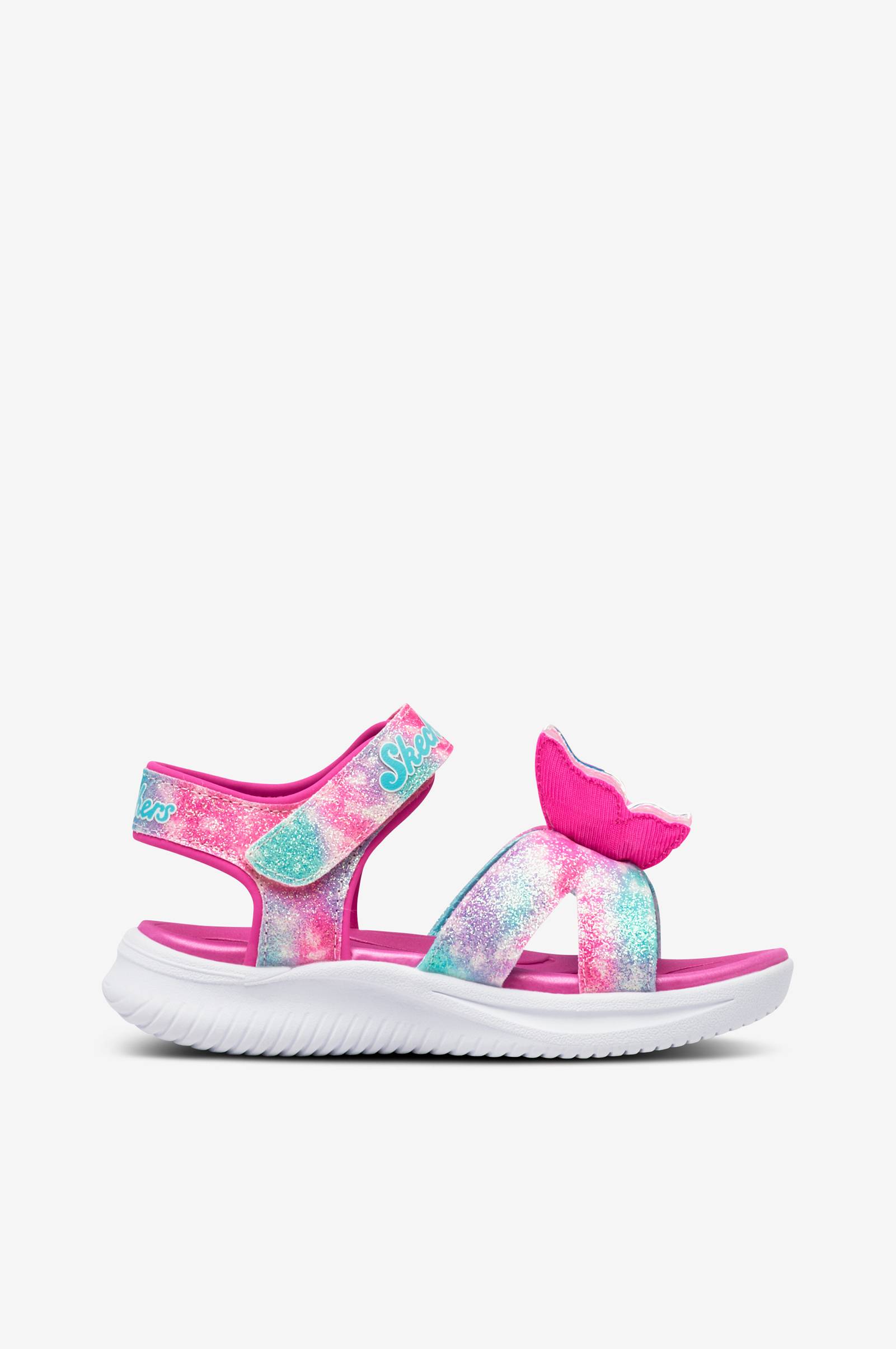 • Glittriga remmar i textil och syntet• Dekorativ, blinkande fjäril• Justerbar kardborrerem