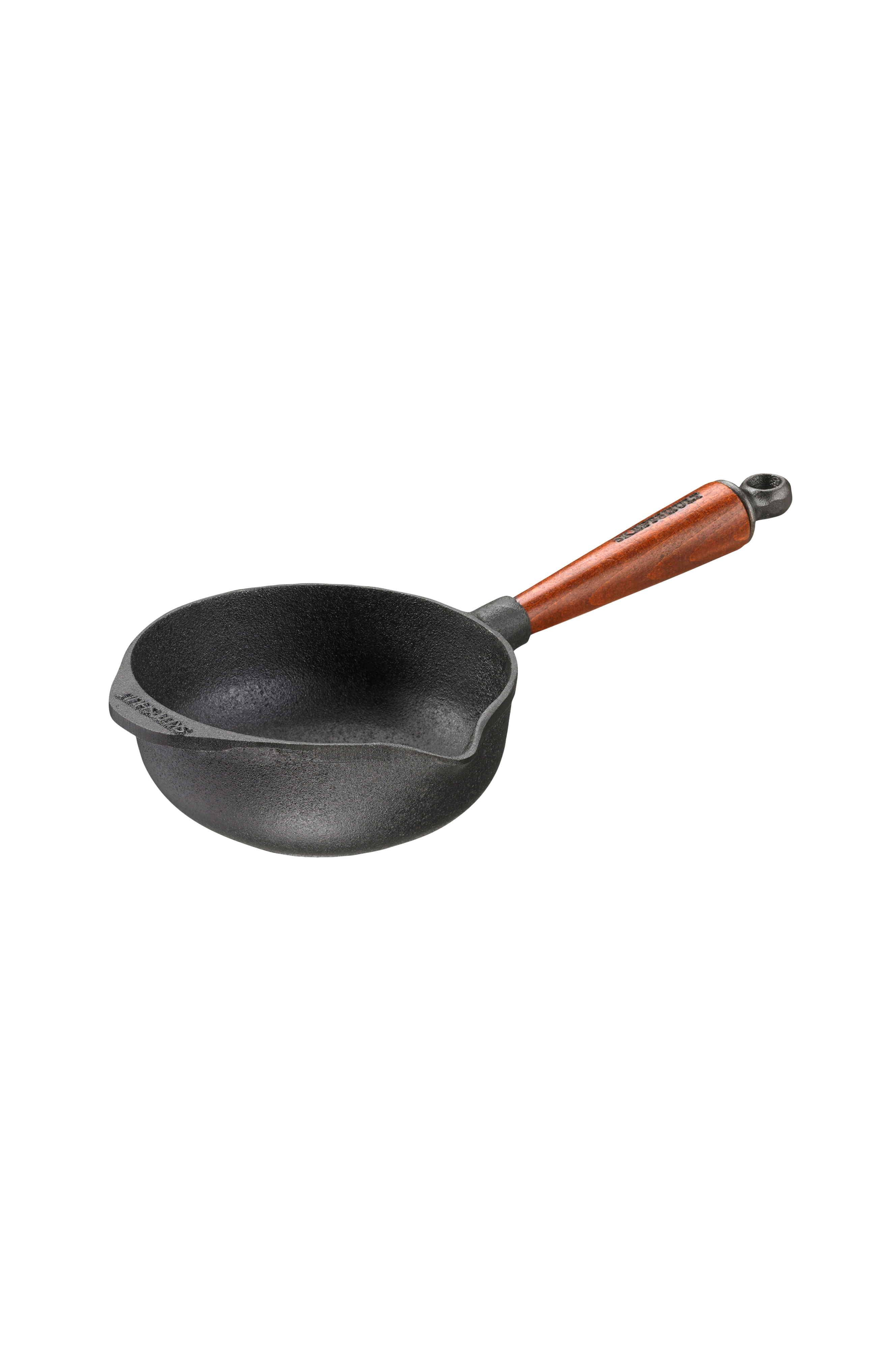 Gjutjärn, trä, stål och inbränd olja. Naturligt, enkelt, robust och fungerar på alla värmekällor. Med en naturlig non-stickyta som förbättras med användande är alla våra stekkärl gjorda för att hålla, år efter år, från generation till generation. Det är ett enkelt men ändå krävande hantverk. Varje detalj gjuts i en unik sandform som sedan slås sönder. Därför blir varenda skepphultprodukt unik och inte den andra exakt lik.