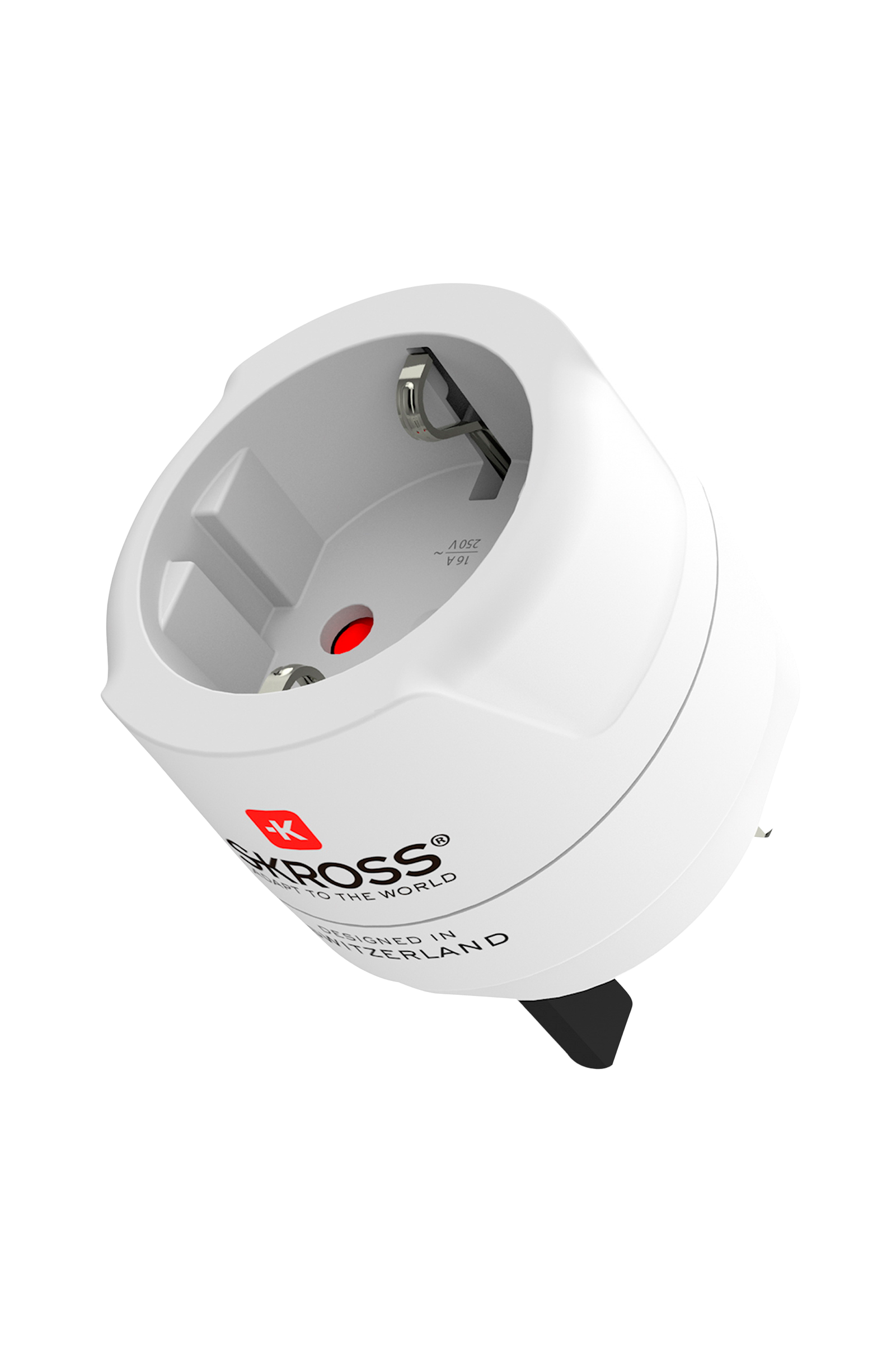 • Idealisk adapter för resor till Storbritannien och länder som använder brittisk kontaktstandard • Lämplig för 2- och 3-pinsenheter med Schuko- eller Euro-kontakter • Utformad i Schweiz • Kompatibel med jordade och ojordade anslutningar • Konverterar från: 3-polig Schuko & 2-polig Euro till UK • Ingång: 100 V - 250 V • Max belastning: 13 A • Effekt: 100 V - 1300 W / 250 V - 33250 W • Utbytbar säkring: T13 A • Omvandlar inte spänningen; ingångsspänningen måste matcha den lokala spänningen.