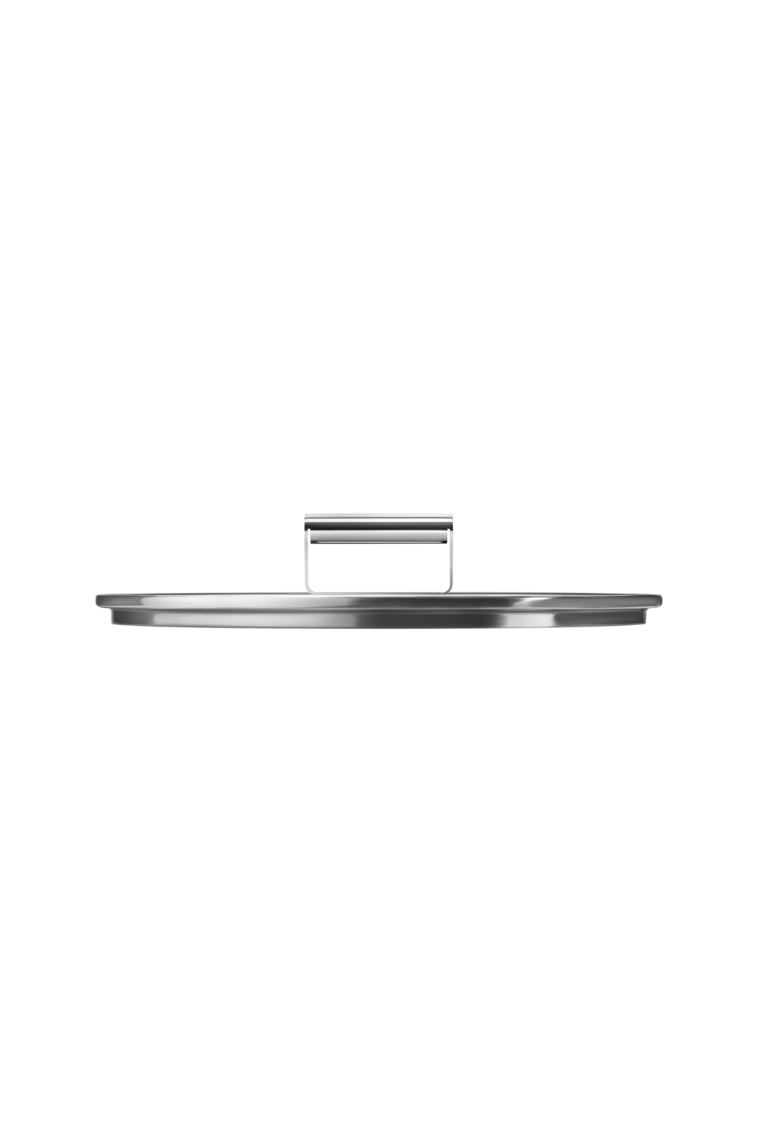 Lock av glas med kant och handtag av metall. Diameter 30 cm.