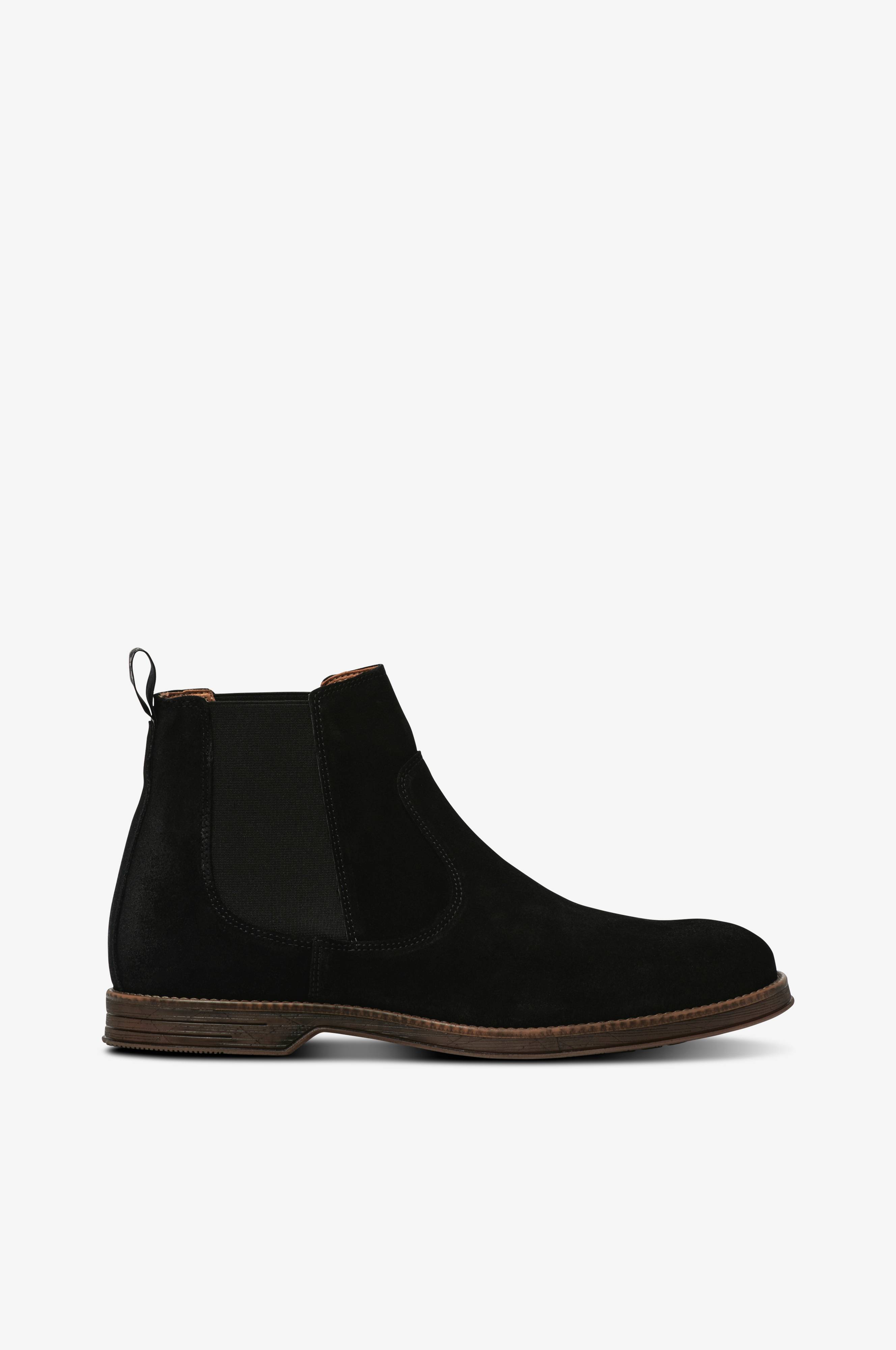 • Chelseaboots i mocka• Resårpaneler på skaftets båda sidor• Vävd dragögla bak• Foder i skinn• Uttagbar innersula• Yttersula i gummi