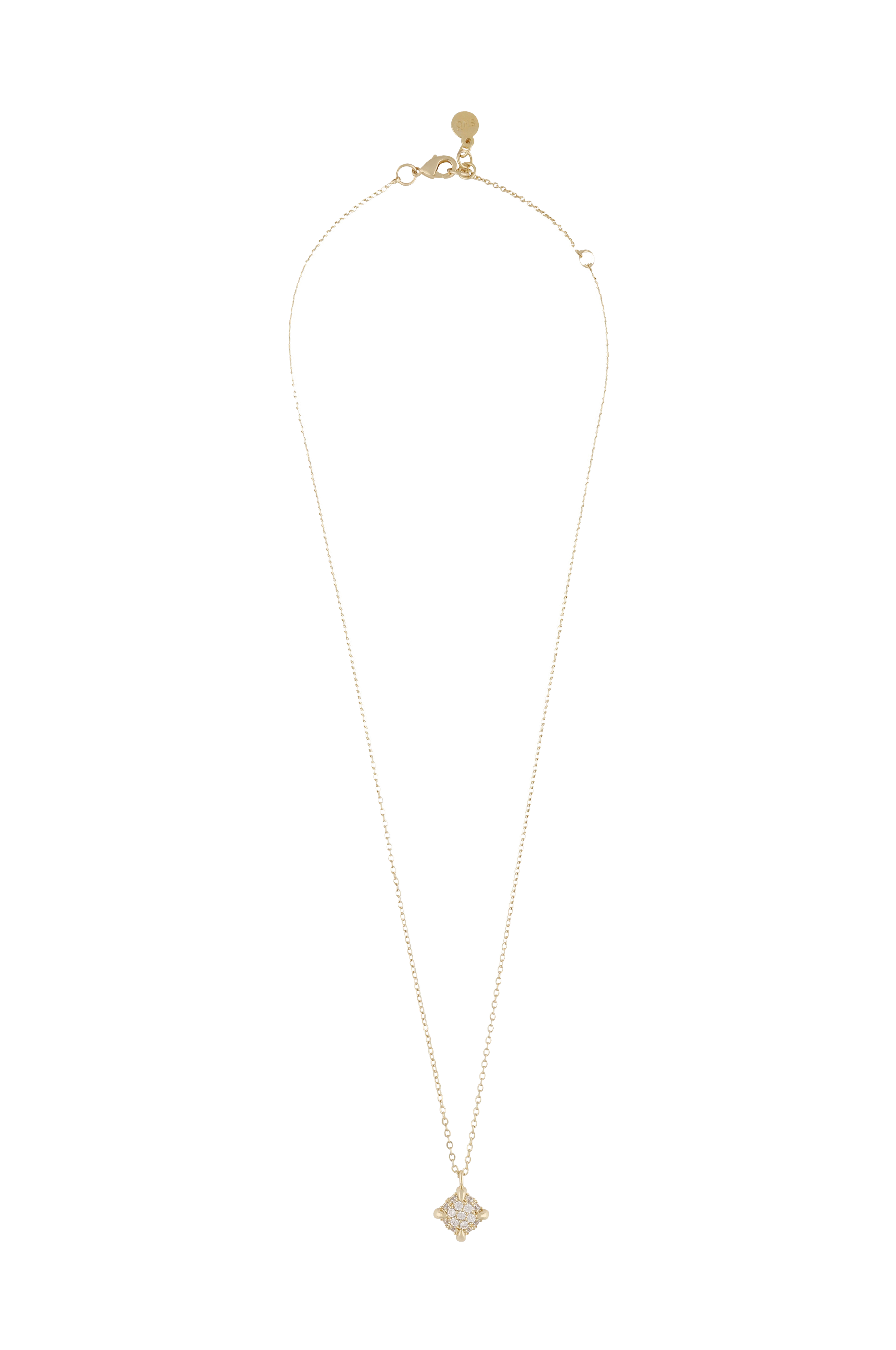 • Tunn kedja• Fyrkantigt hänge med gnistrande stenar• Gjort av guldpläterad mässing med kubisk zirkonia• Kedjans längd 45 cm• Hängets mått 0,8 x 0,8 cm