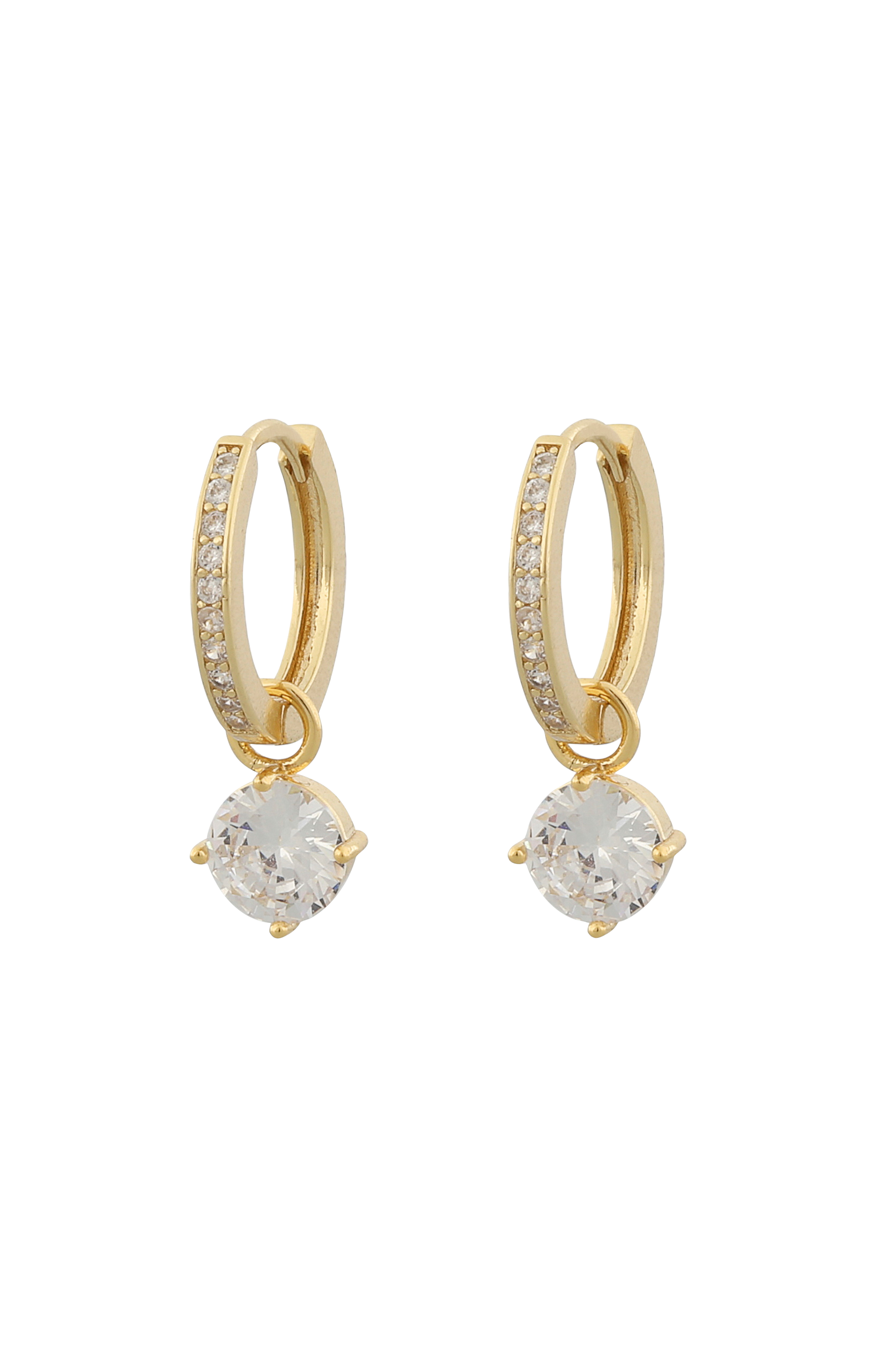 • Runda örhängen med gnistrande stenar • Avtagbart hänge med en glittrig sten • Stenar i kubisk zirkonia • Nickeltestade • Av pläterad mässing • Diameter: 14 mm • Stenens diameter: 6 mm