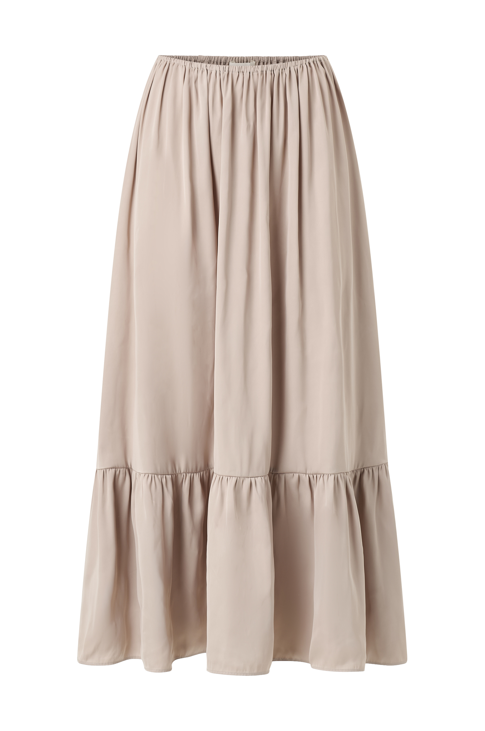 • A-linjeskuren kjol i glansigt material• Smal resår i midjan• Volang i nederkanten• Längd: 93 cm i storlek 36