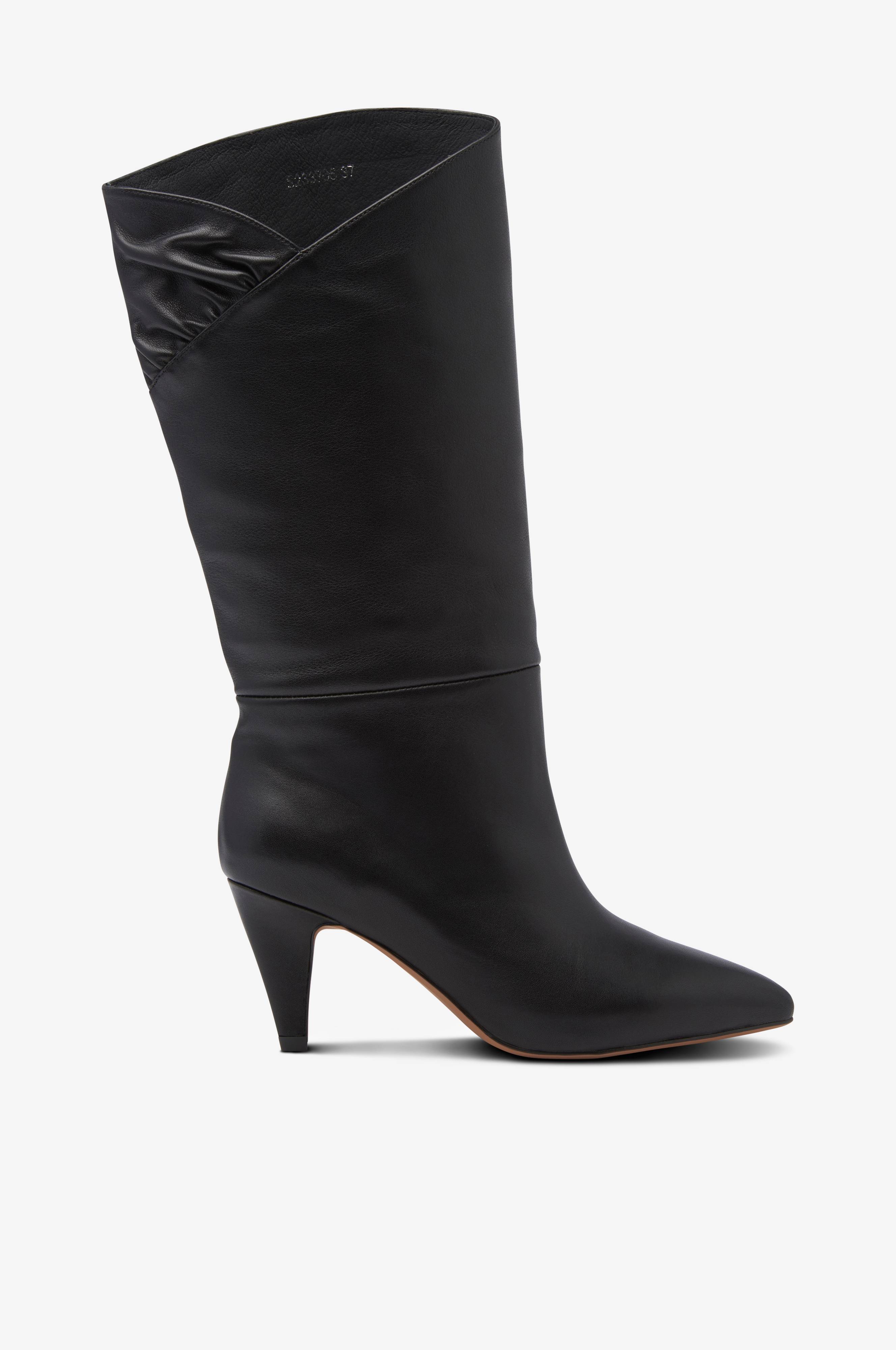 • Modell i skinn • Spetsig tå • Smal klack • Drapering upptill på skaftet • Foder i skinn med innersula i skinn • Skafthöjd: 30 cm i stl 37 • Klackhöjd: 7,5 cm
