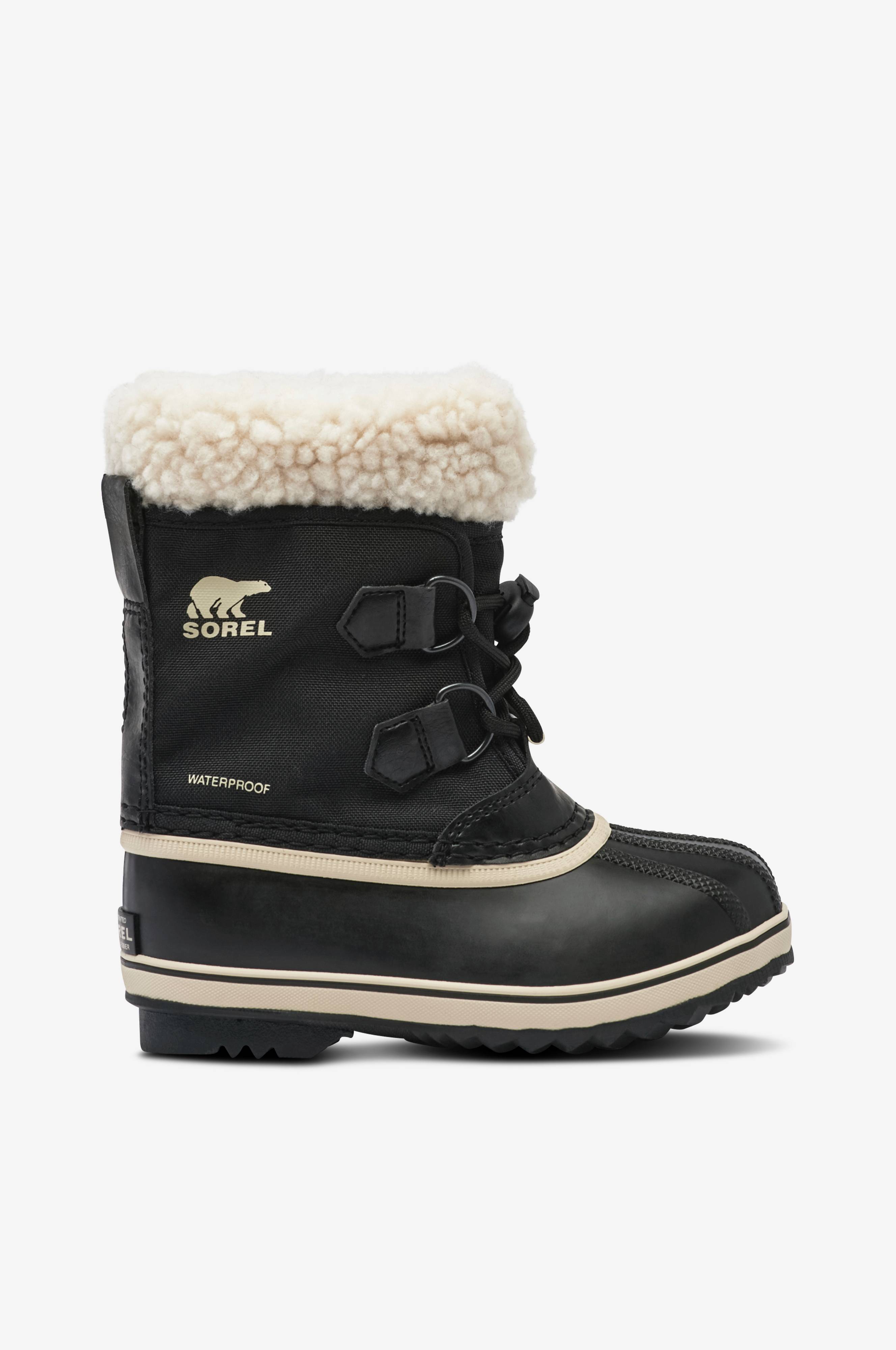 • Vattentäta, varmfodrade vinterkängor • Helgjuten fot i gummi • Skaft i polyamid • Uttagbar, tvättbar innersocka • Krage i teddy • Snörning med stopper • Mellansula med kylbarriär • Plös med snölås • Draghälla bak på skaftet • Greppsäker yttersula i gummi