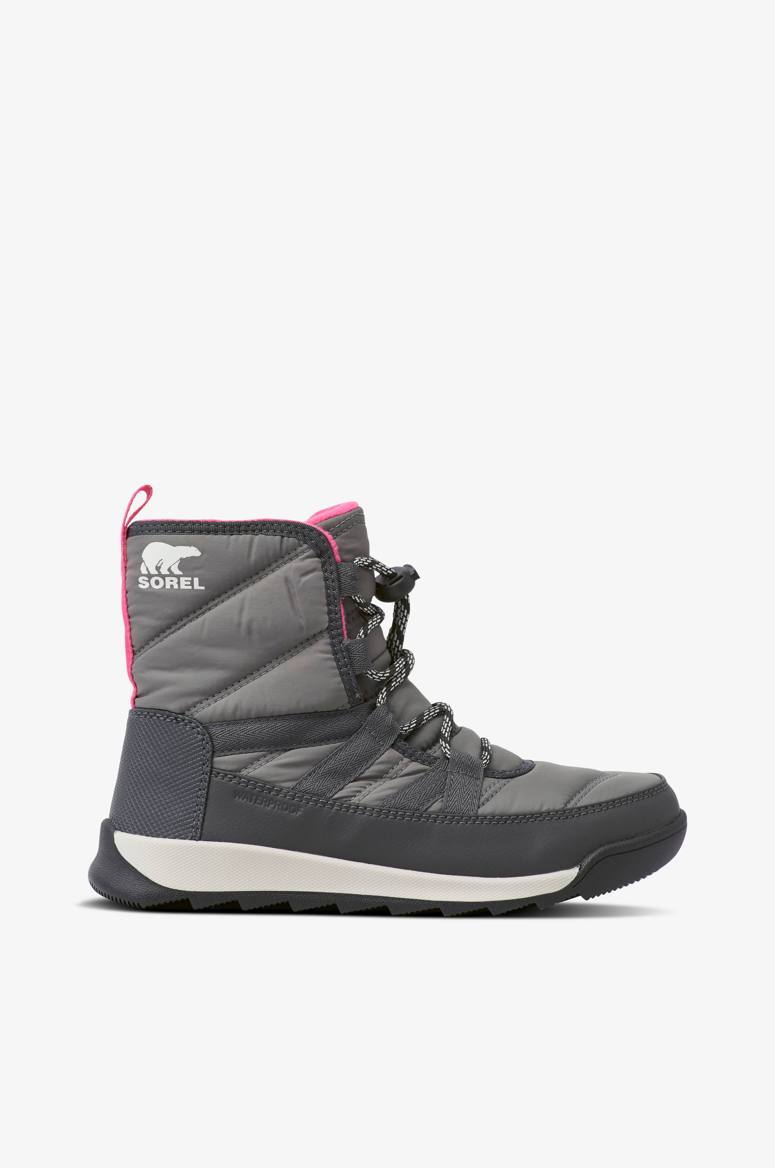 Youth Whitney II Short Lace från Sorel är en varmfodrad och vattentät känga med ovandel i nylon med PU-belagda syntetförstärkningar. Skaftet har mjuk microfleece på insidan. Vävd draghälla baktill på skaftet. Snabbsnörning med stopper. Urtagbar innersula i EVA, klädd i microfleece. Greppsäker yttersula i gummi.