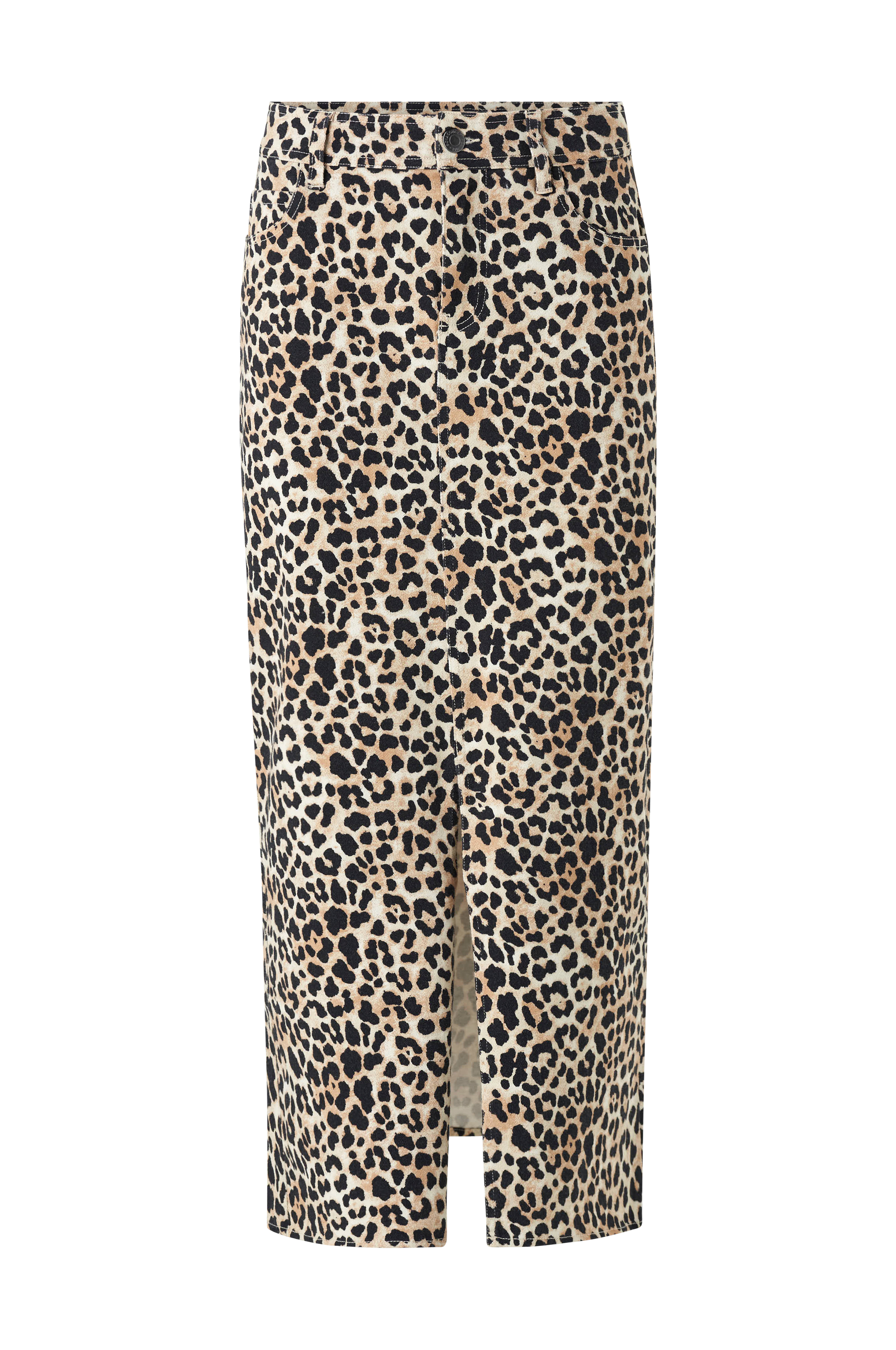 • Midikjol i tunt material med leopardmönster• Femficksmodell• Hög slits nedtill fram• Stängning med dragkedjegylf och silverfärgad knapp fram• Bälteshälla i midjan