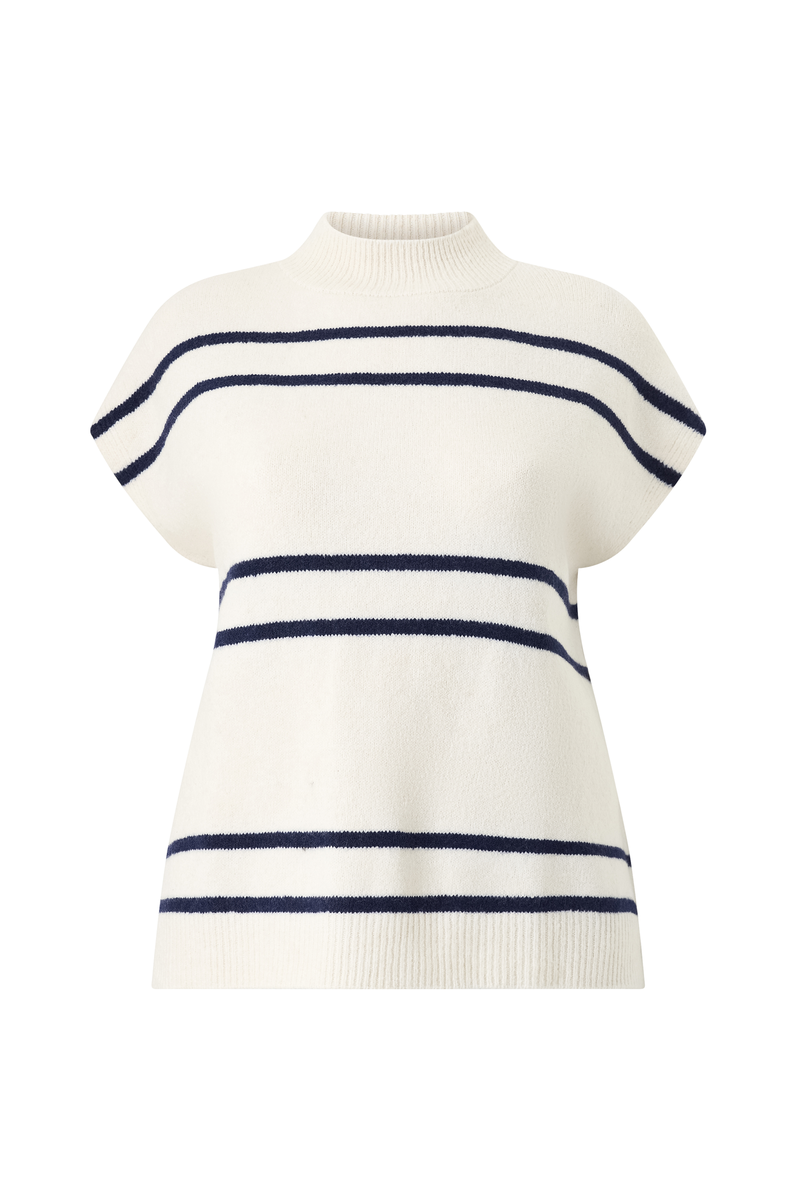 • Mjuk, finstickad väst• Halvhög, ribbstickad ståkrage• Ribbstickning i nederkanten• Något längre bakstycke