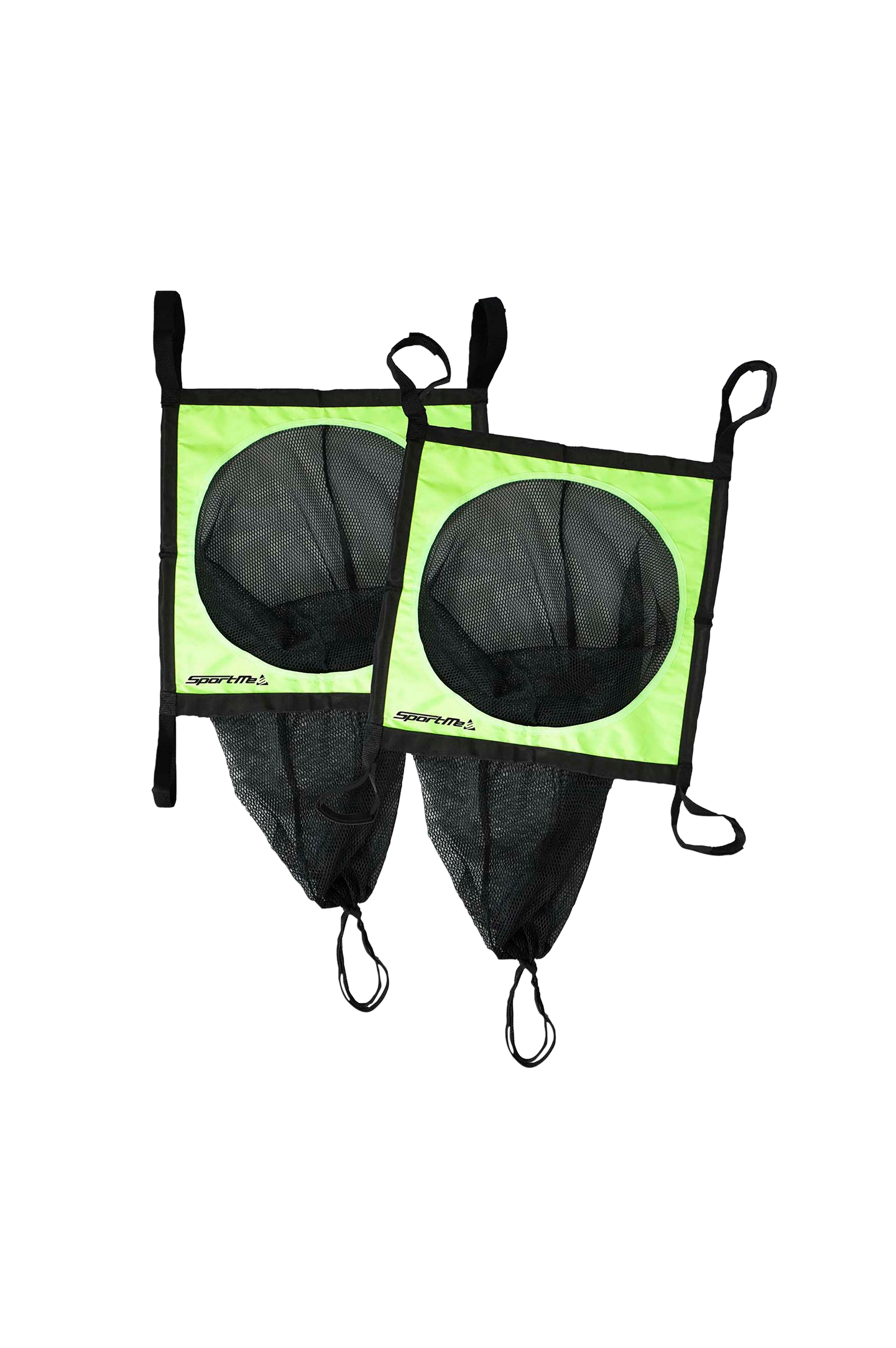 • Förstärkt ram och nätväska med snabböppning • Kardborrefästen för säker fastsättning på tvärstång och stolpe • Rymmer cirka 3-5 fotbollar, beroende på storlek • Målstorlek: 45x45 cm med ett hål med en diameter på 35 cm • Idealisk för skjutövningar.