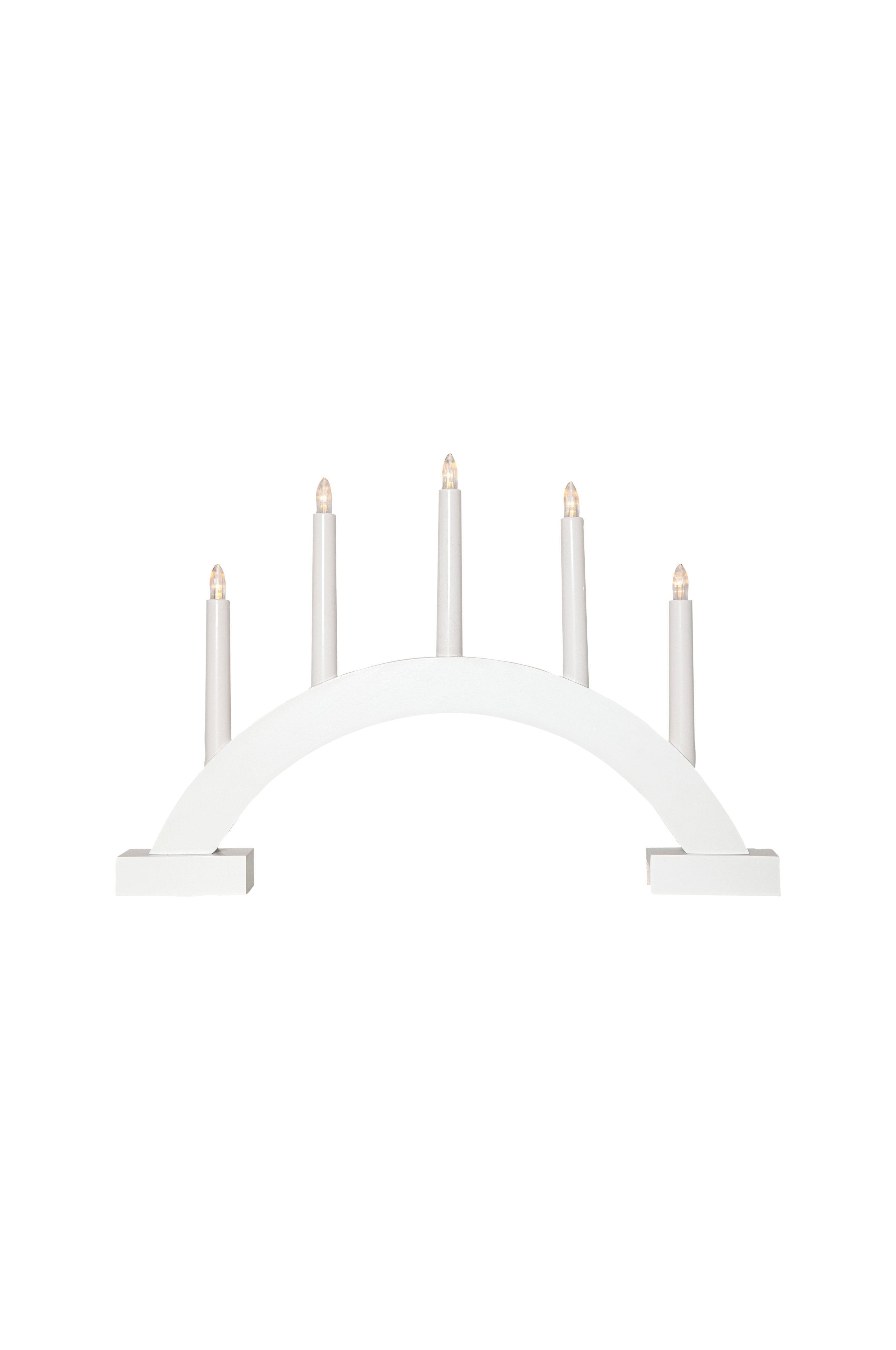 Batteridriven bågformad adventsljusstake av trä. Ljusstaken är liten och nätt och därför lätt att placera i både fönster och på ett sideboard. Led-lampor som lyser fint och skapar en julig känsla i hemmet.