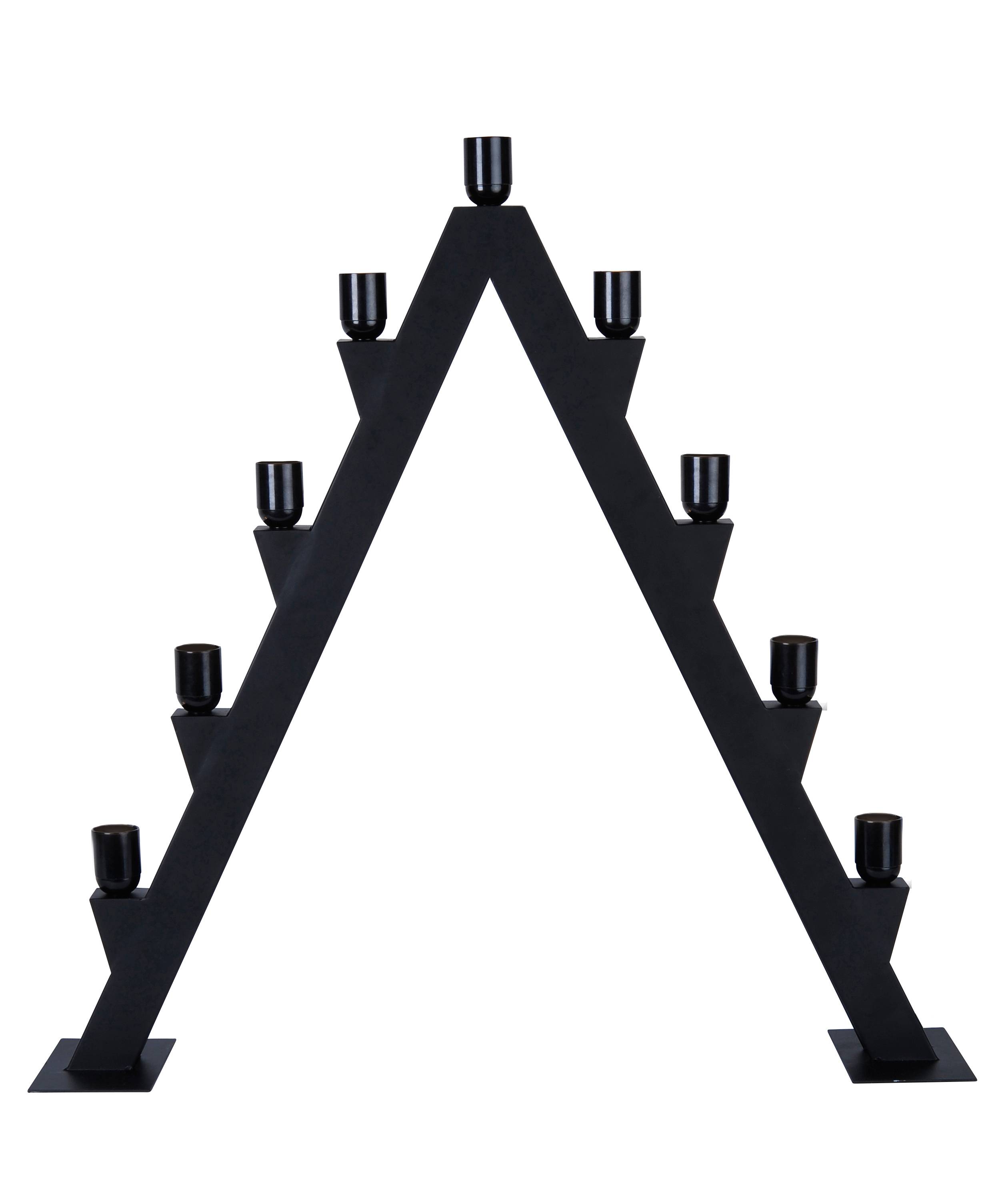 Trendig ljusstake med plats för 9 stycken E27 lampor. Höjd 83 cm. Djup 15 cm. Bredd 77 cm. Anslutningskabel 1,8 m med brytare. Ljuskällor ingår inte.