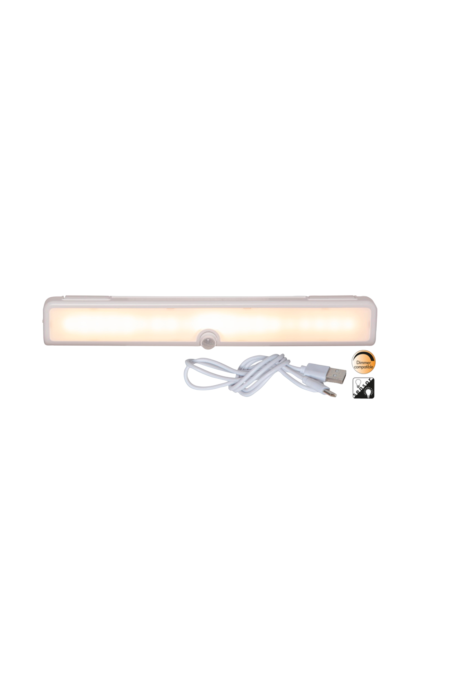 Nattlampa med skymningssensor. Drivs med 3 aa-batterier (lyser upp med 150 lm) eller med usb-kabel (lyser upp med 250 lm). Välj mellan rörelsesensor (autoläge) eller stadigt ljus (på-läge). Dimbar med skjutknapp, 25/50/100%. Justerbara väggfästen på baksidan. För inomhusbruk!