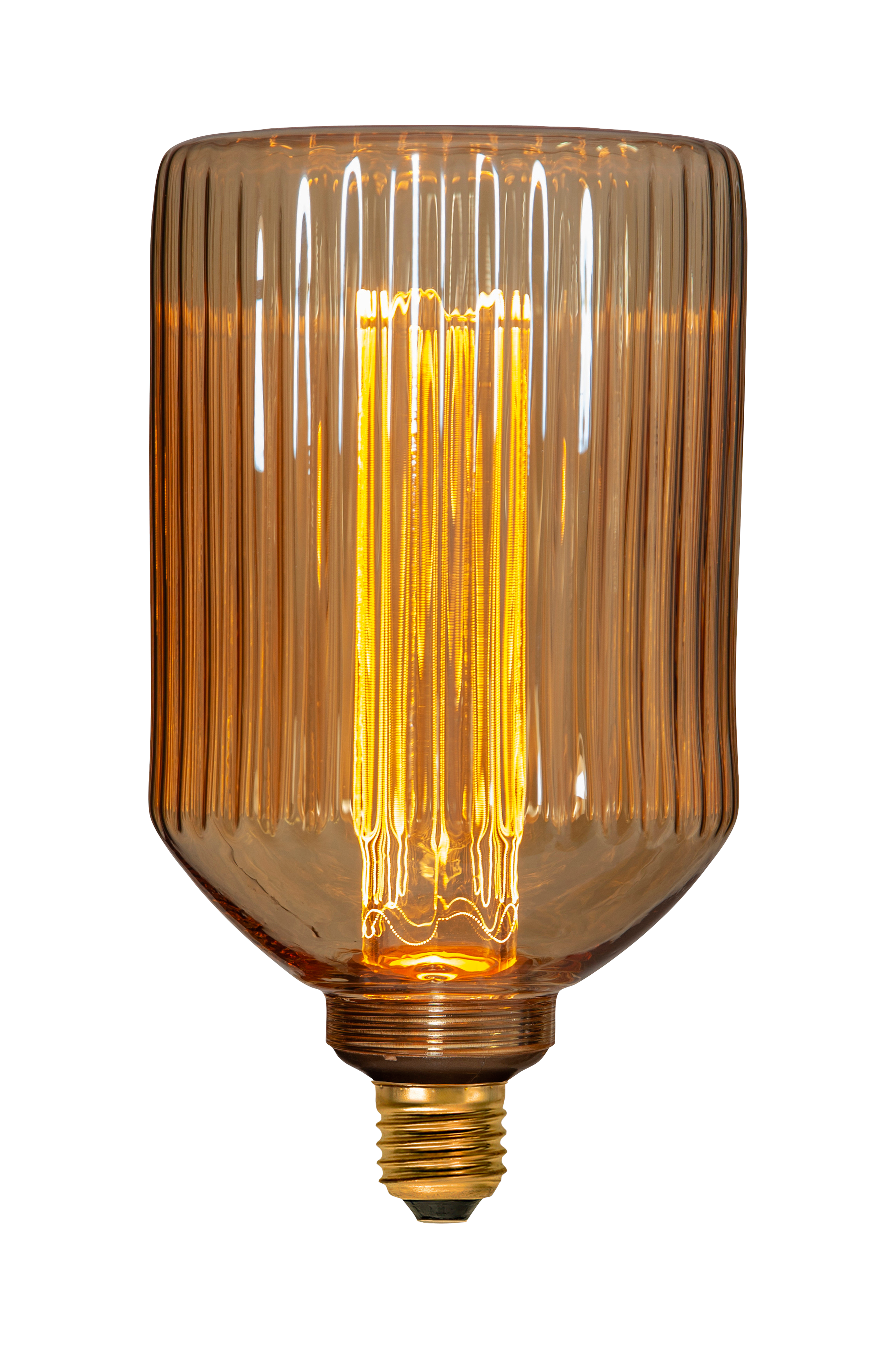 Läcker led-lampa med spännande form och amberfärgat glas. Denna ljuskälla ger ett mysigt och varmt sken. Lämpar sig ypperligt för dekorationsbelysning och passar perfekt i våra upphäng, eller lampfötter. Kan hänga själv eller i ett arrangemang.