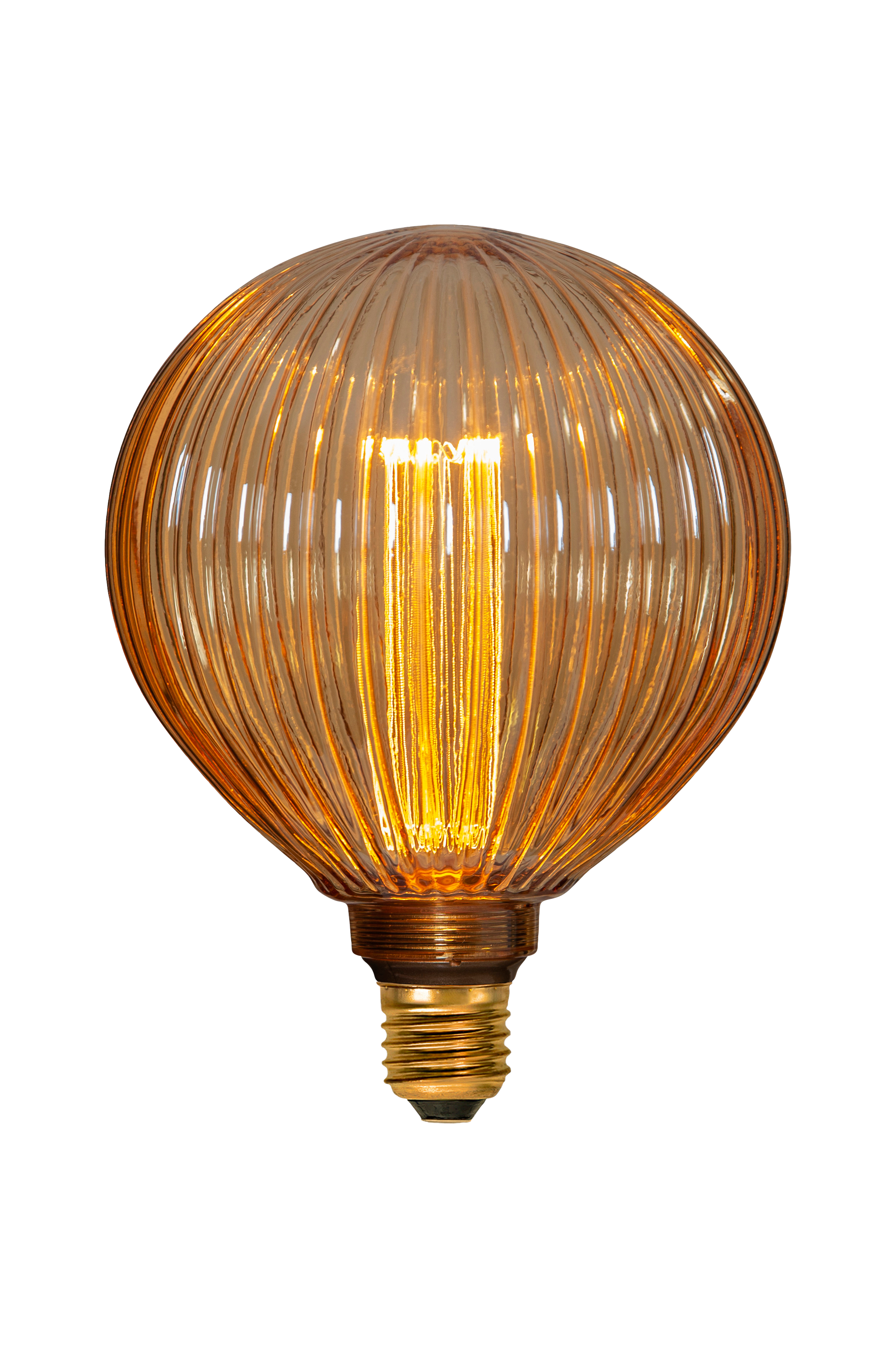 Läcker led-lampa med amberfärgat glas. Denna ljuskälla ger ett mysigt och varmt sken. Lämpar sig ypperligt för dekorationsbelysning och passar perfekt i våra upphäng, eller lampfötter. Kan hänga själv eller i ett arrangemang.