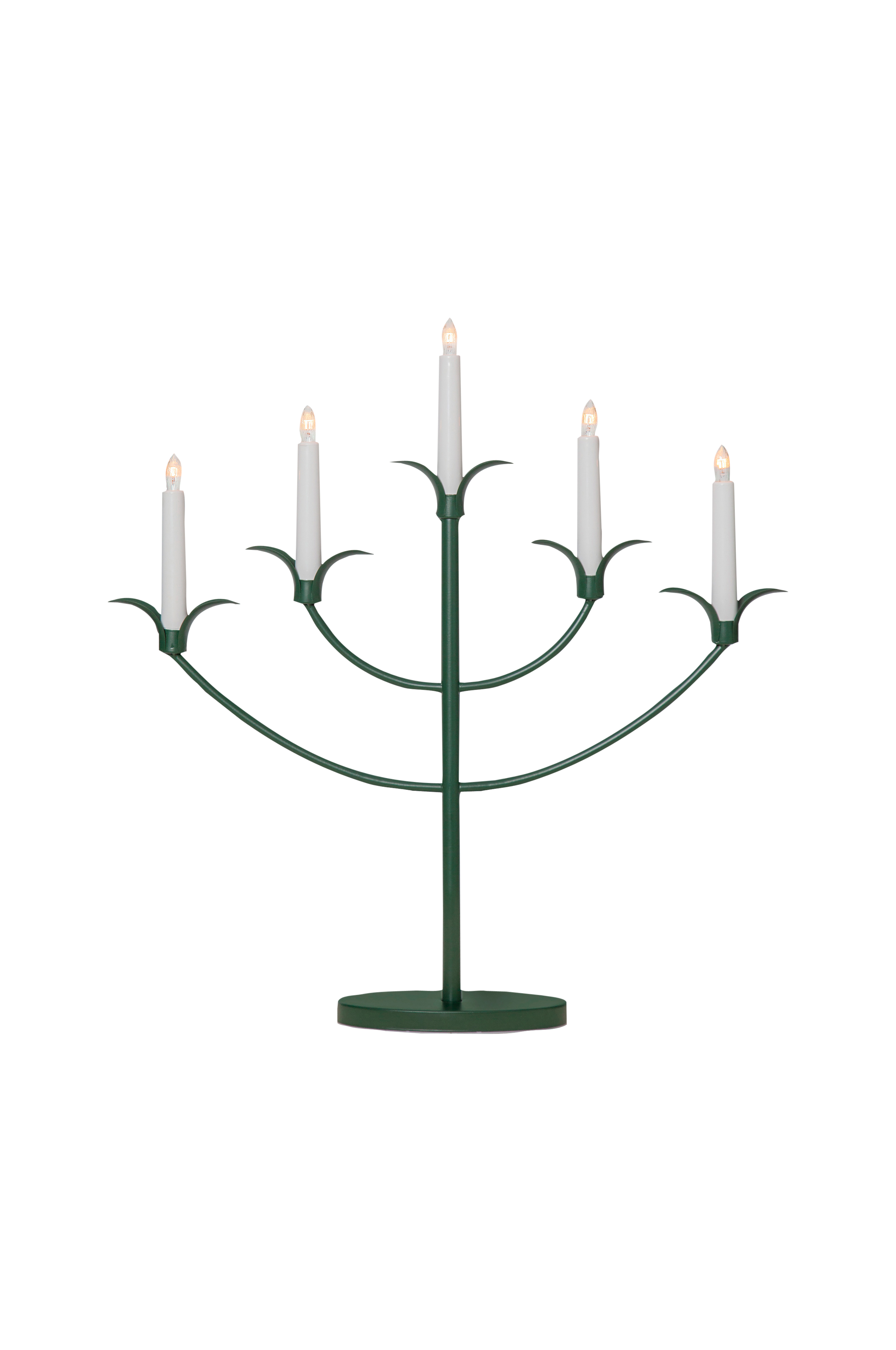 Elljusstake Tilpi i metall med vackra detaljer kring ljushållarna. 5 ljuskällor (medföljer). Mått: Höjd 52 cm, bredd 54 cm, djup 8 cm. Sladdlängd 1,8 m med strömbrytare. Ljuskällor: 5xE10, 1,8 w.