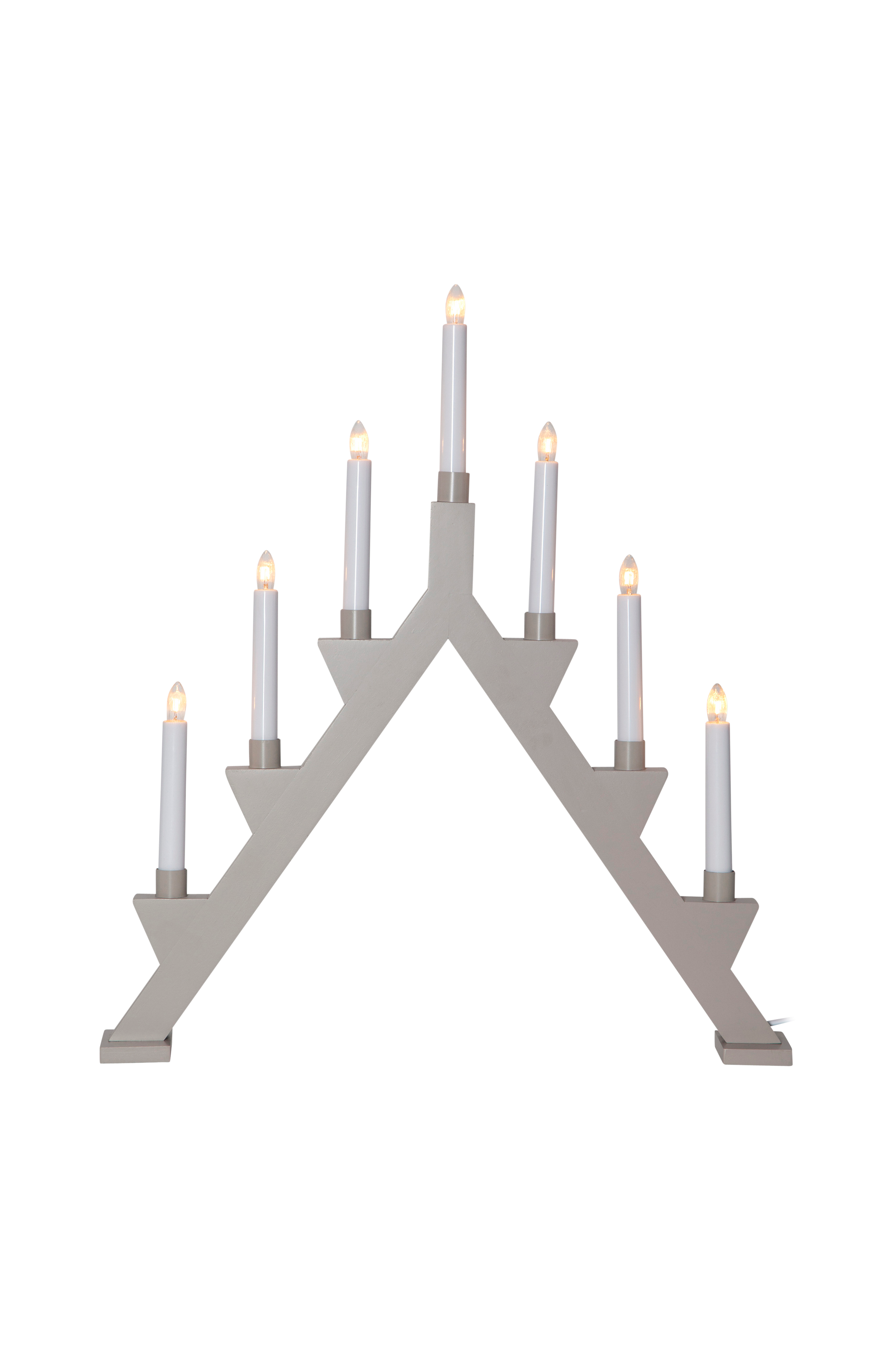 Ljusstake i traditionell form med ett modernt uttryck. Matchande hylsor som dekoration på ljuspiporna. Ger ett fräscht intryck och en härlig julstämning. E10-sockel, ljuskälla ingår. Vit anslutningskabel, 180 cm. Höjd 53 cm, bredd/längd 47 cm och djup 7 cm.