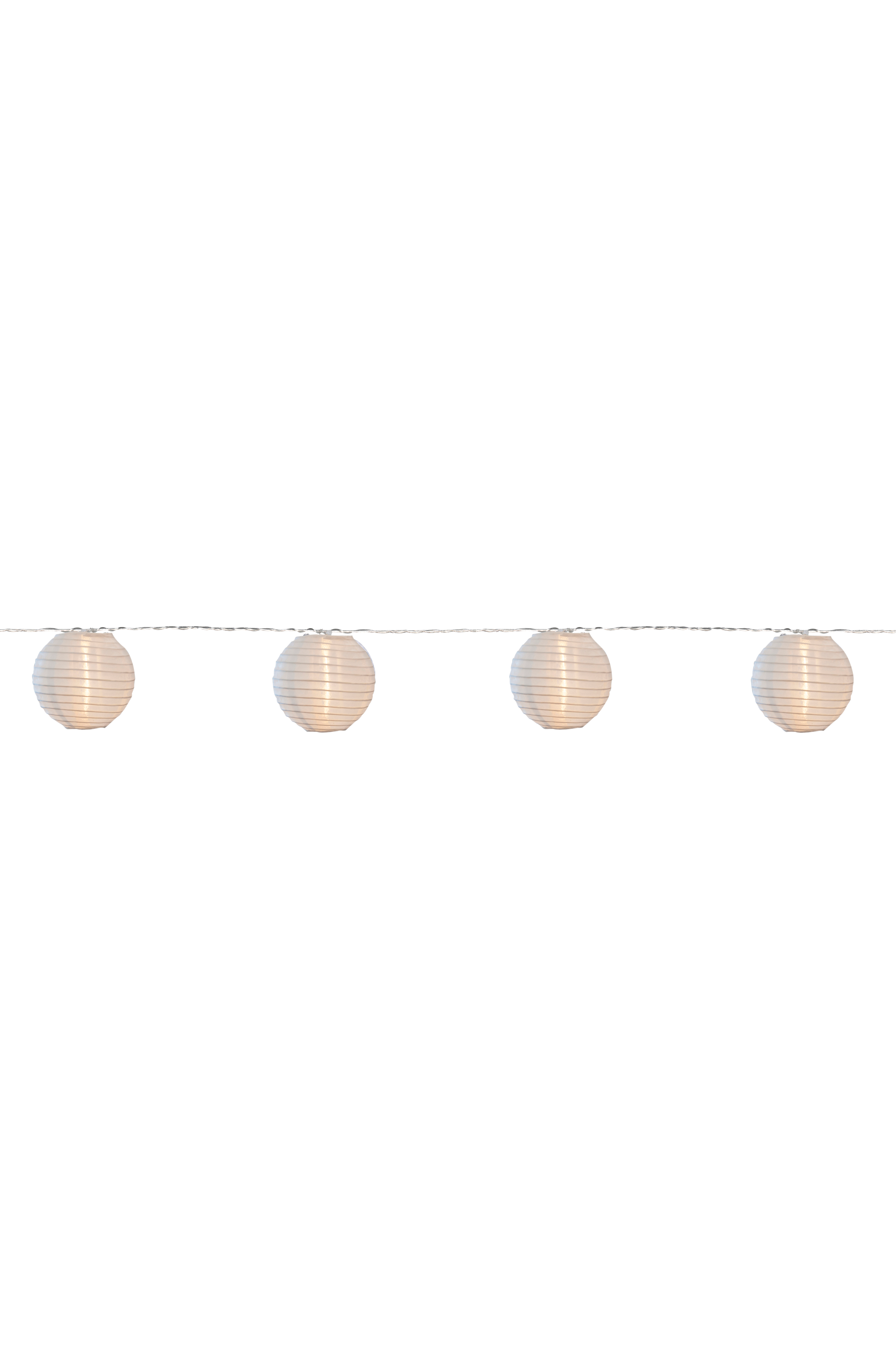 Ljusslinga med 10 LED-ljuskällor fint dekorerad med vita tyglyktor. Häng upp ljusslingan utomhus för att få en mysig omgivning. Perfekt att dekorera med till vardags och fest. Bredd/Längd: 450 cm Höjd: 7 cm Djup: 7 cm