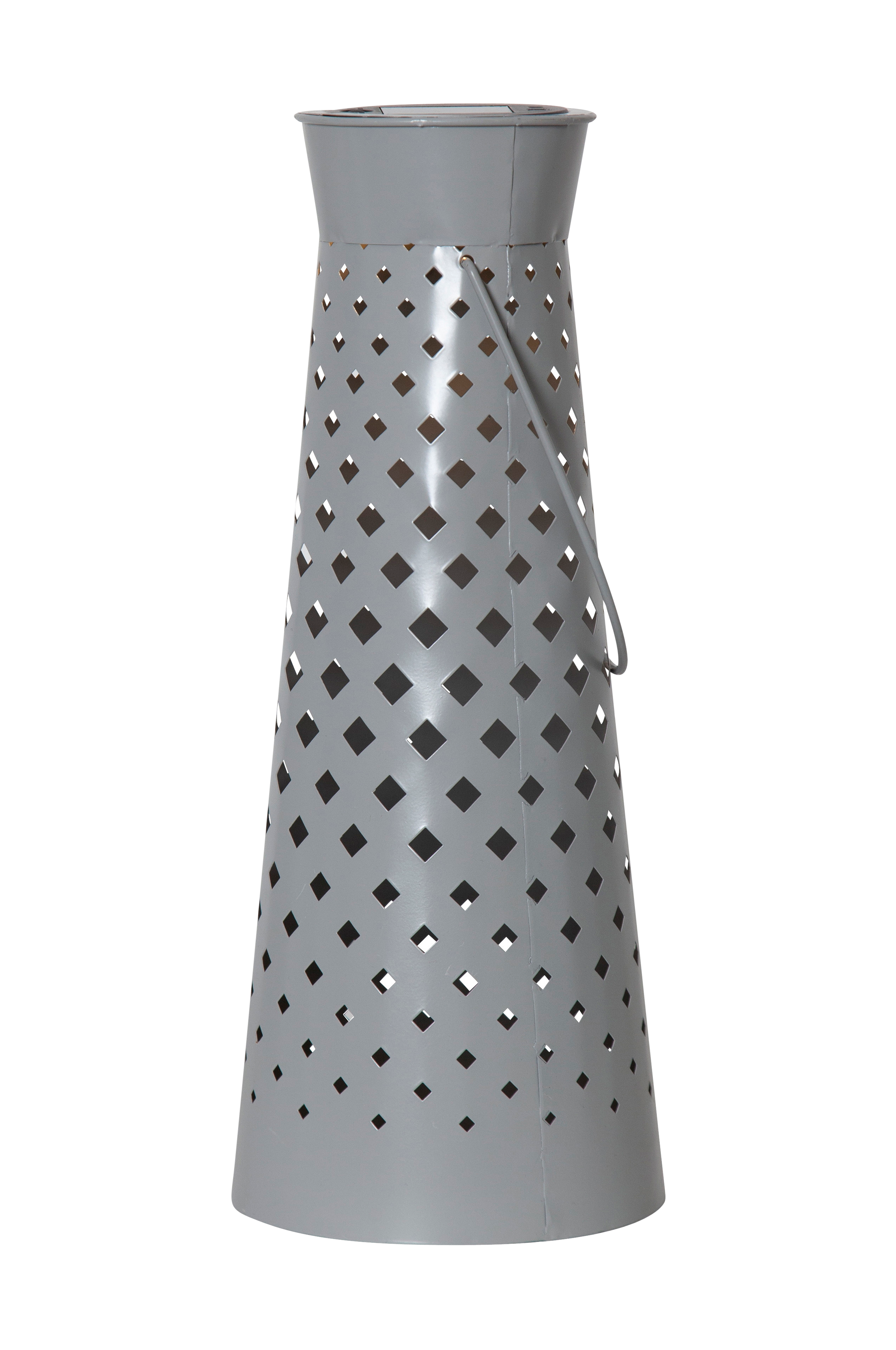 Vår fina lykta romby är en solcellsbelysning gjord i grå metall. Det varmvita ljuset lyser vackert genom det stansade rombmönstret och bildar en vacker ljusbild. Lyktan är fin att placera i din trädgård eller på en balkong. Placera solcellsdekorationen där solen kan nå panelen under dagen för att få ultimat laddning till det medföljande batteriet.
