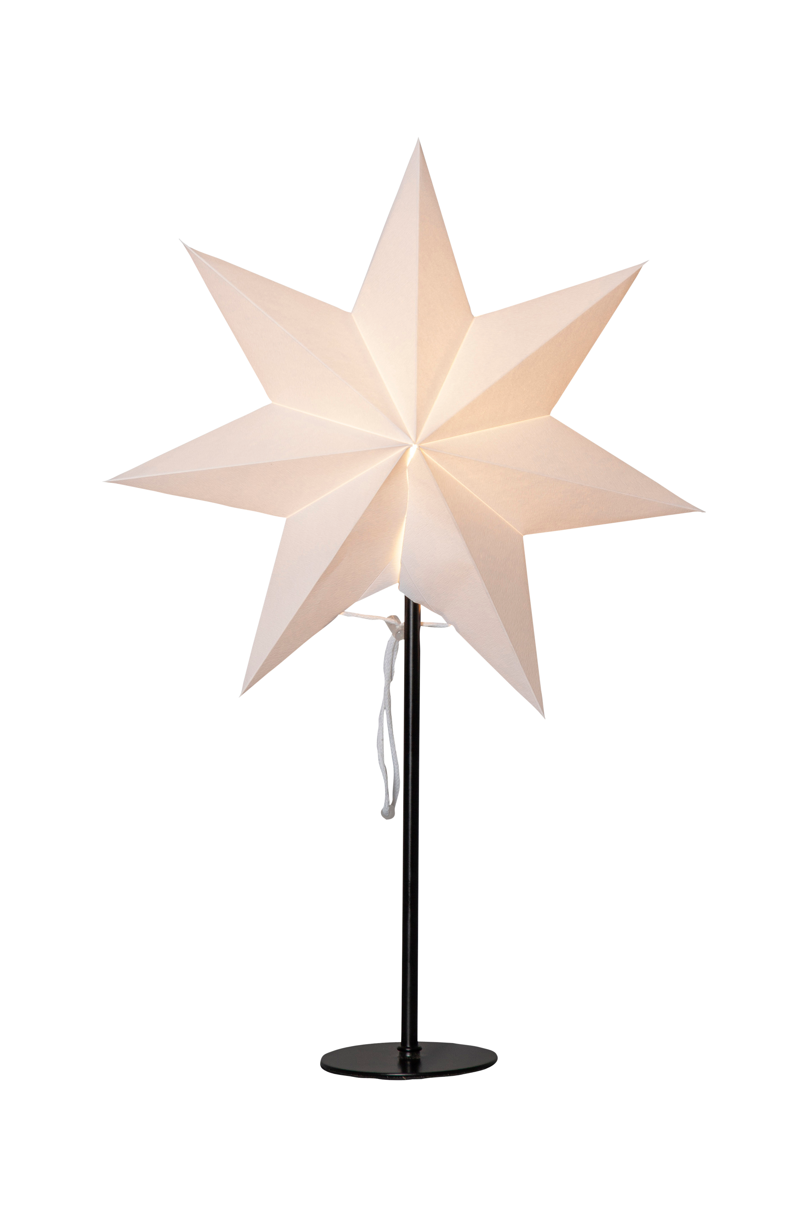 Stjärna med svart fot. Elegant juldekoration, lätt att placera och passar perfekt i ett fönster eller på ett sideboard. Stjärnan har plats för en ljuskälla. Höjden är 55 cm.