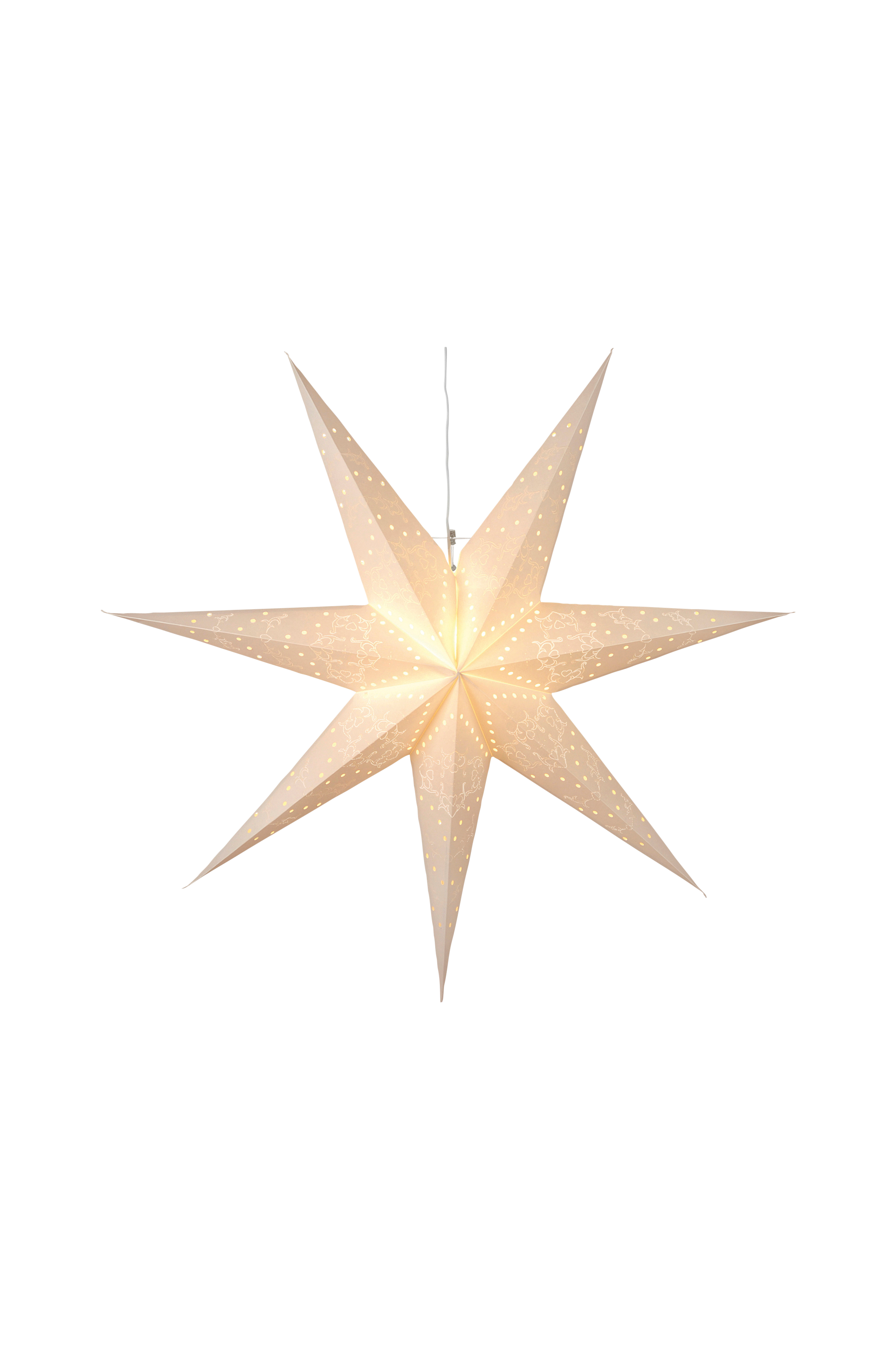 En vacker dekorativ pappersstjärna för inomhusbruk. Sprider härligt sken och skapar mysig atmosfär i hemmet. Denna produkt är fsc®-certifierad. Längden på anslutningskabeln är 350 cm med e14-uttag. Stjärnan är 100 cm i diameter.
