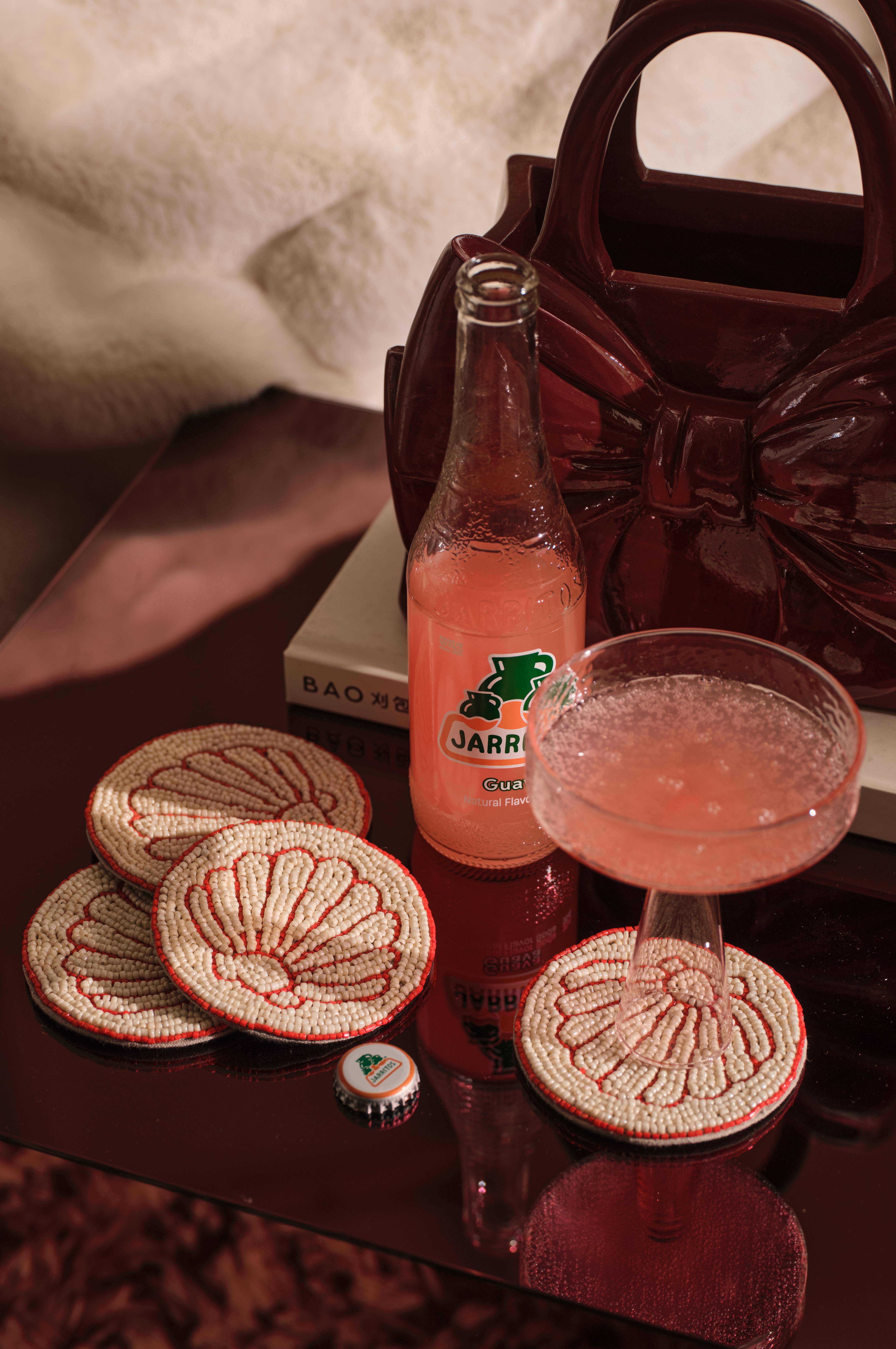 • Handgjorda glasunderlägg med glaspärlor• Baksida i linnetyg