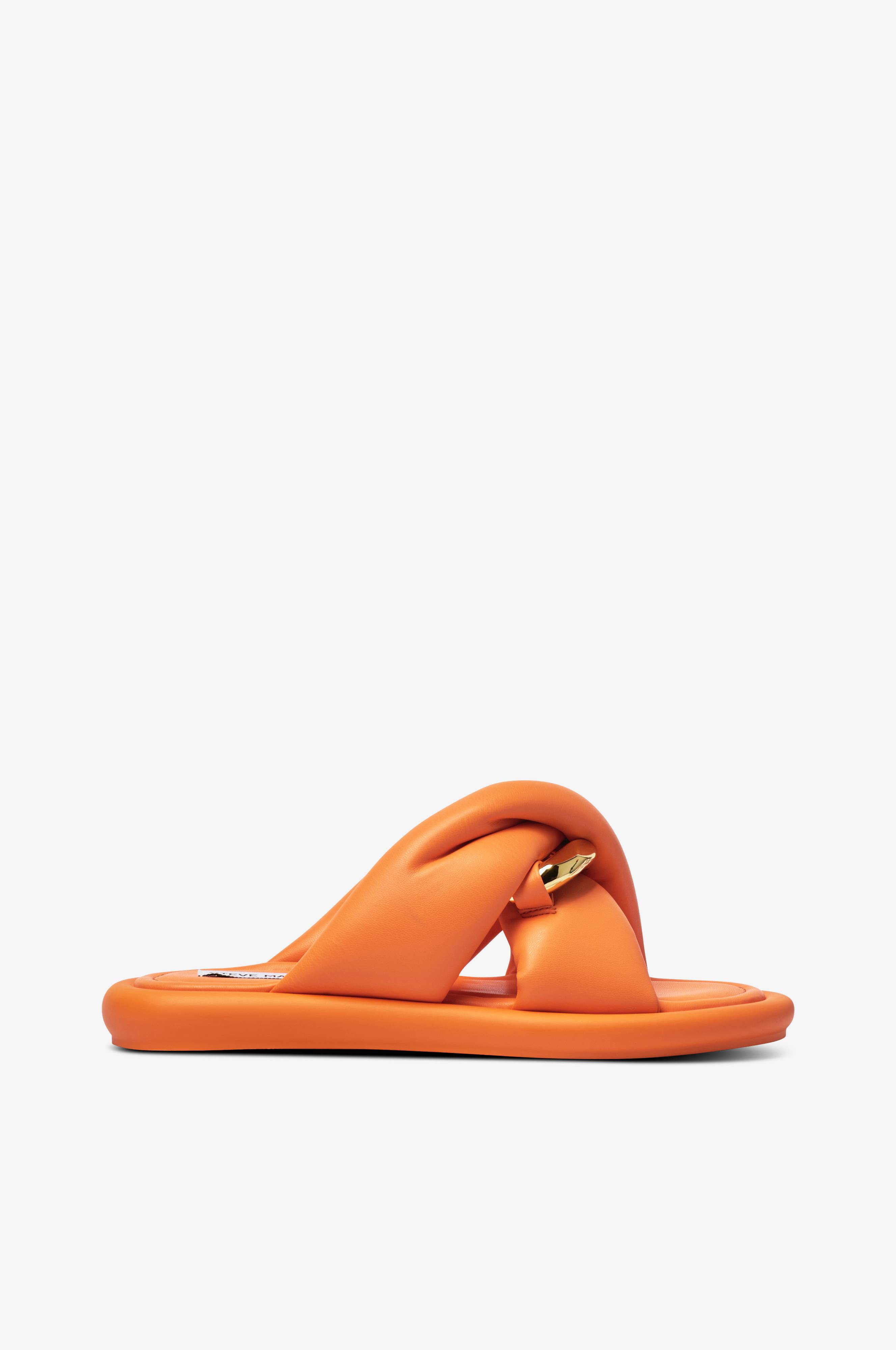 • Platta sandaler• Korslagda, vadderade remmar i skinnimitation med guldfärgat smycke i plast