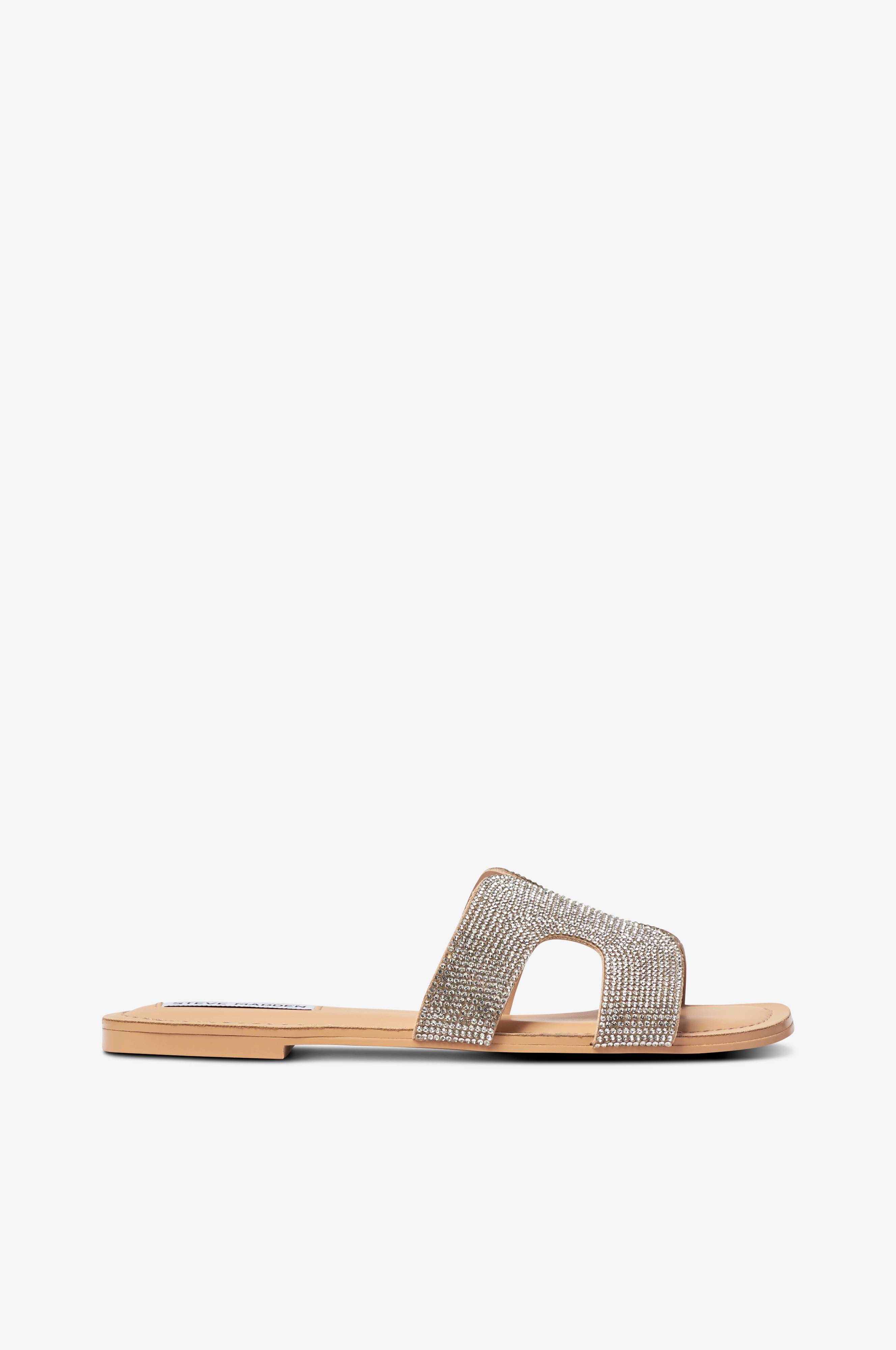 • Ovandel i skinnimitation med skimrande strass• Mjuk fotbädd