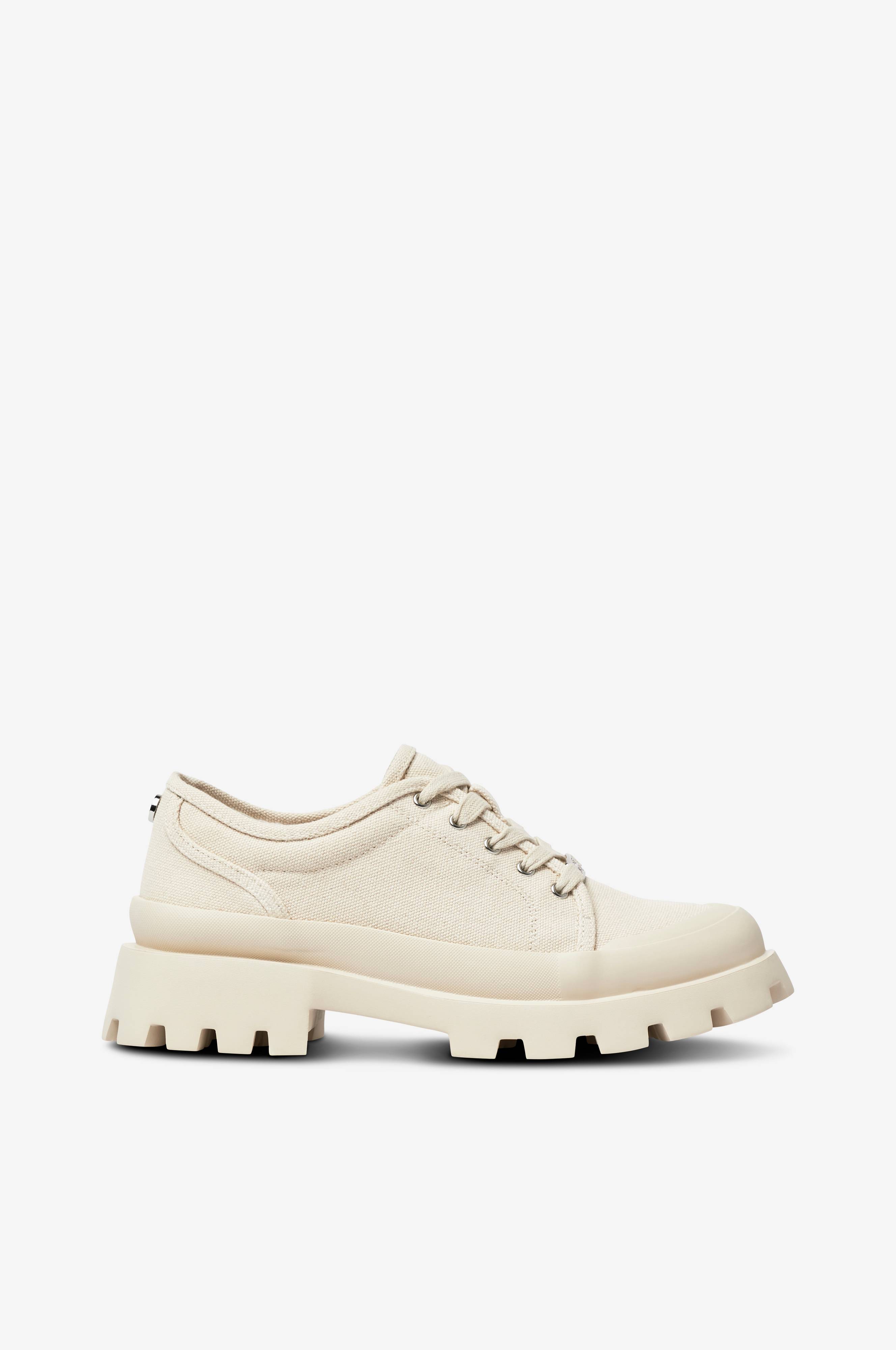 Sneakers i textil med kant i gummi runt sulan. Foder i textil och mjukstoppad innersula. Grovmönstrad yttersula. Sulans höjd bak 3,5 cm.