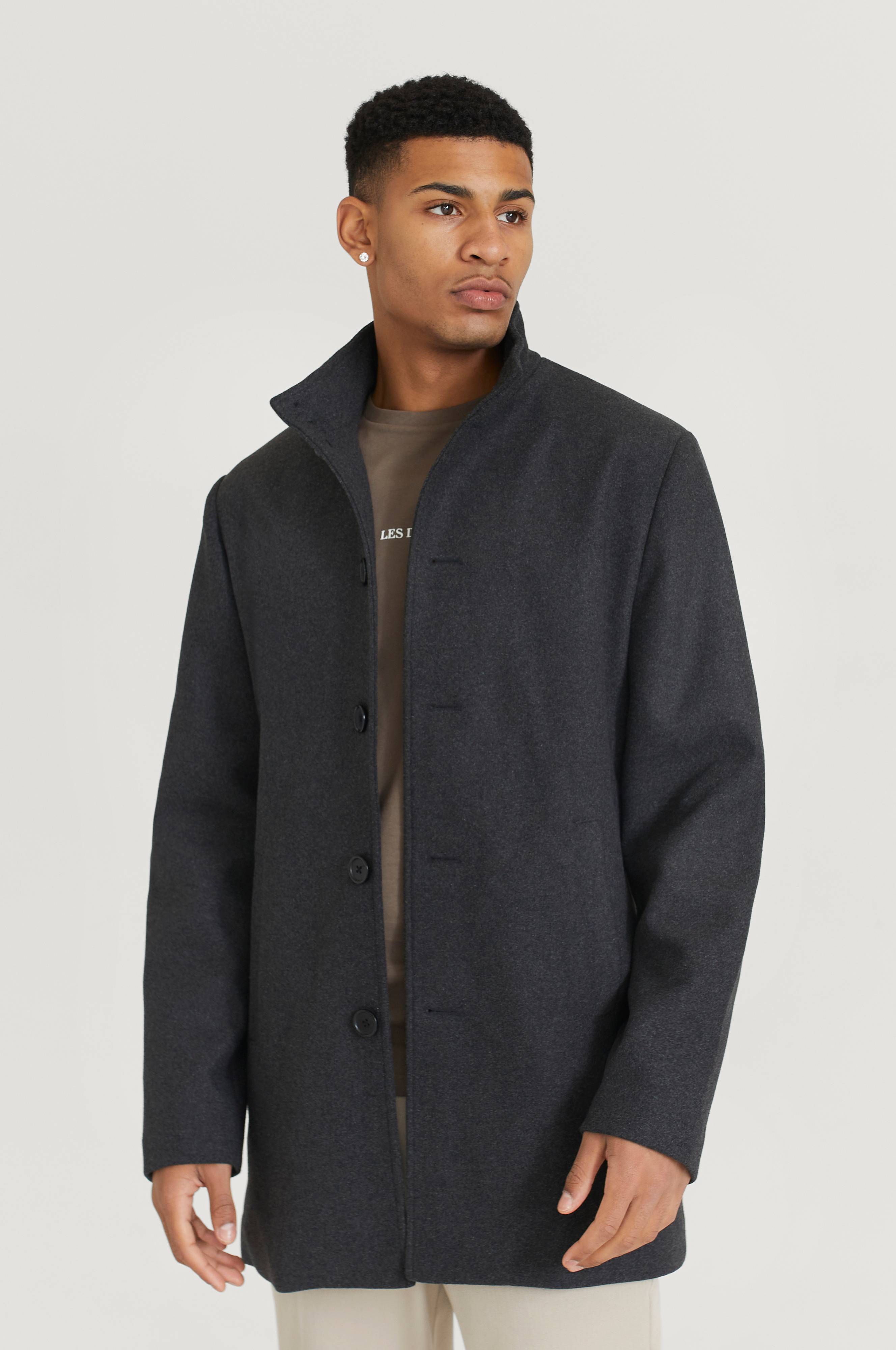 Rock Clean Stand Coat från Studio Total. Rocken är en slim modell som är något kortare i längden. Den har ståkrage med knappar framtill. Tillverkad i en ullblandning med tunn fodring. Rocken har två sidofickor och ett sprund baktill.