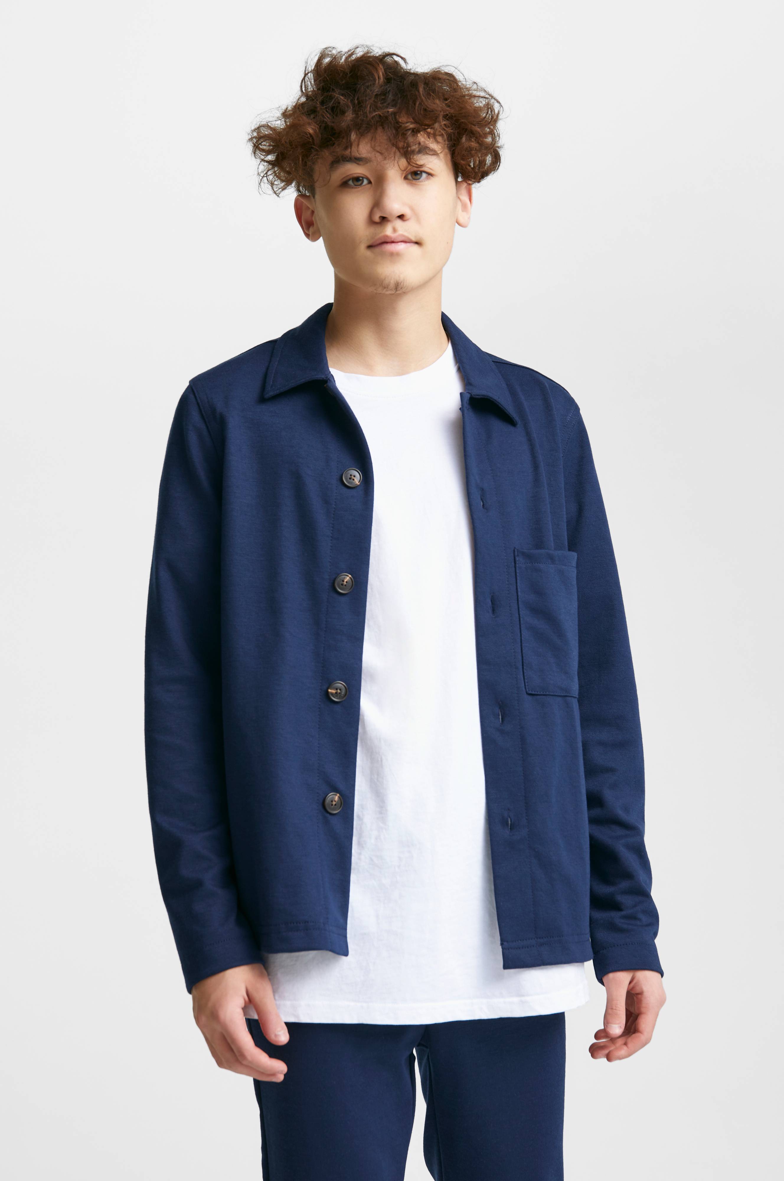 Skjorta New Soft Overshirt från Studio Total. En Overshirt i mini struktur. En midweight trikå som kan bäras både som en skjorta och tunnare Overshirt vid varmt väder. Krage och en ficka på ena bröstet. Overshirten stängs med knappar som är graverade med Studio Total.