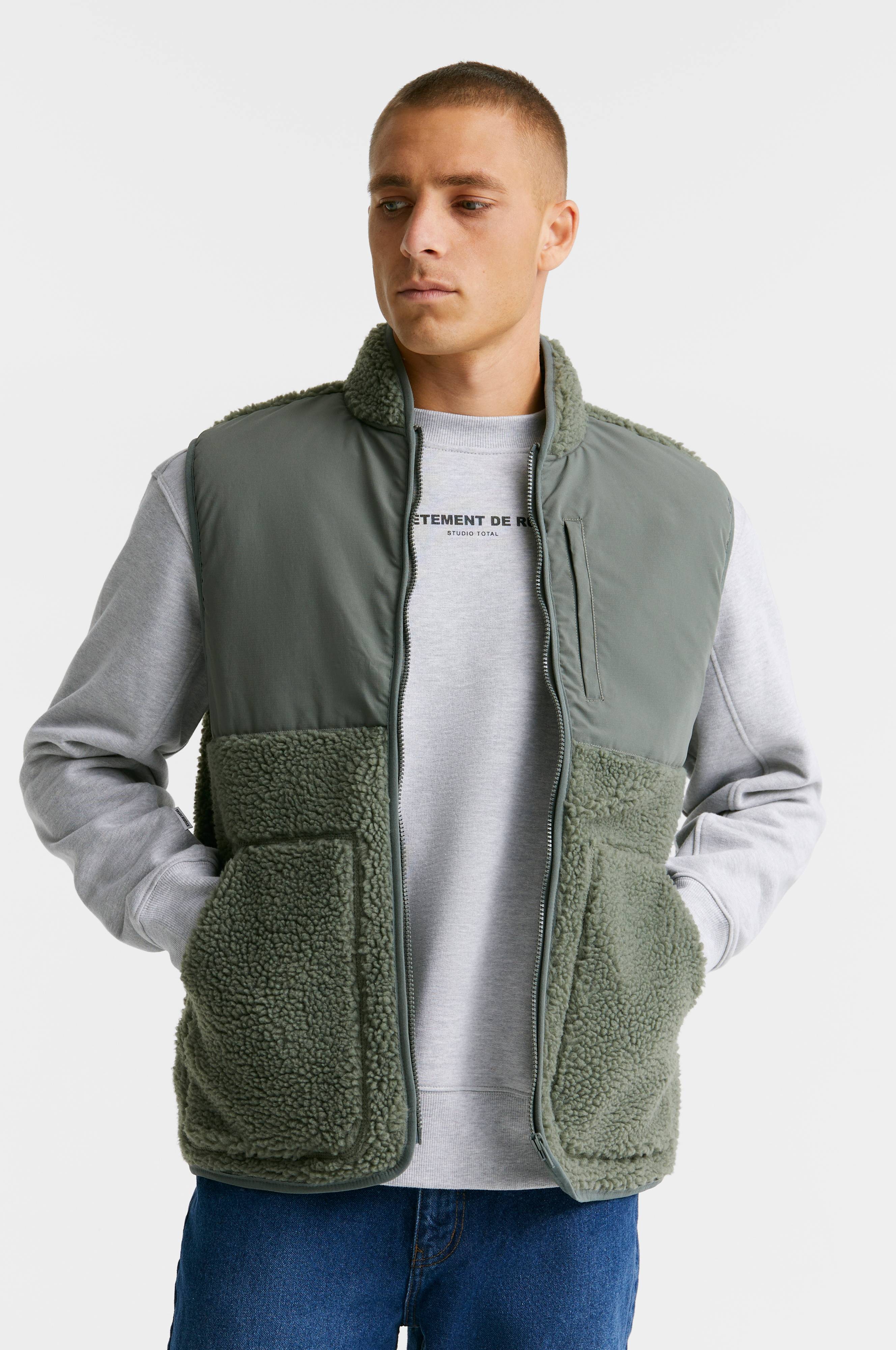 • Väst i teddyfleece• Vävt parti upptill fram• Dragkedja• Två fickor nedtill• Bröstficka med dragkedja• Elastiska kanter i ärmsluten och i nederkanten