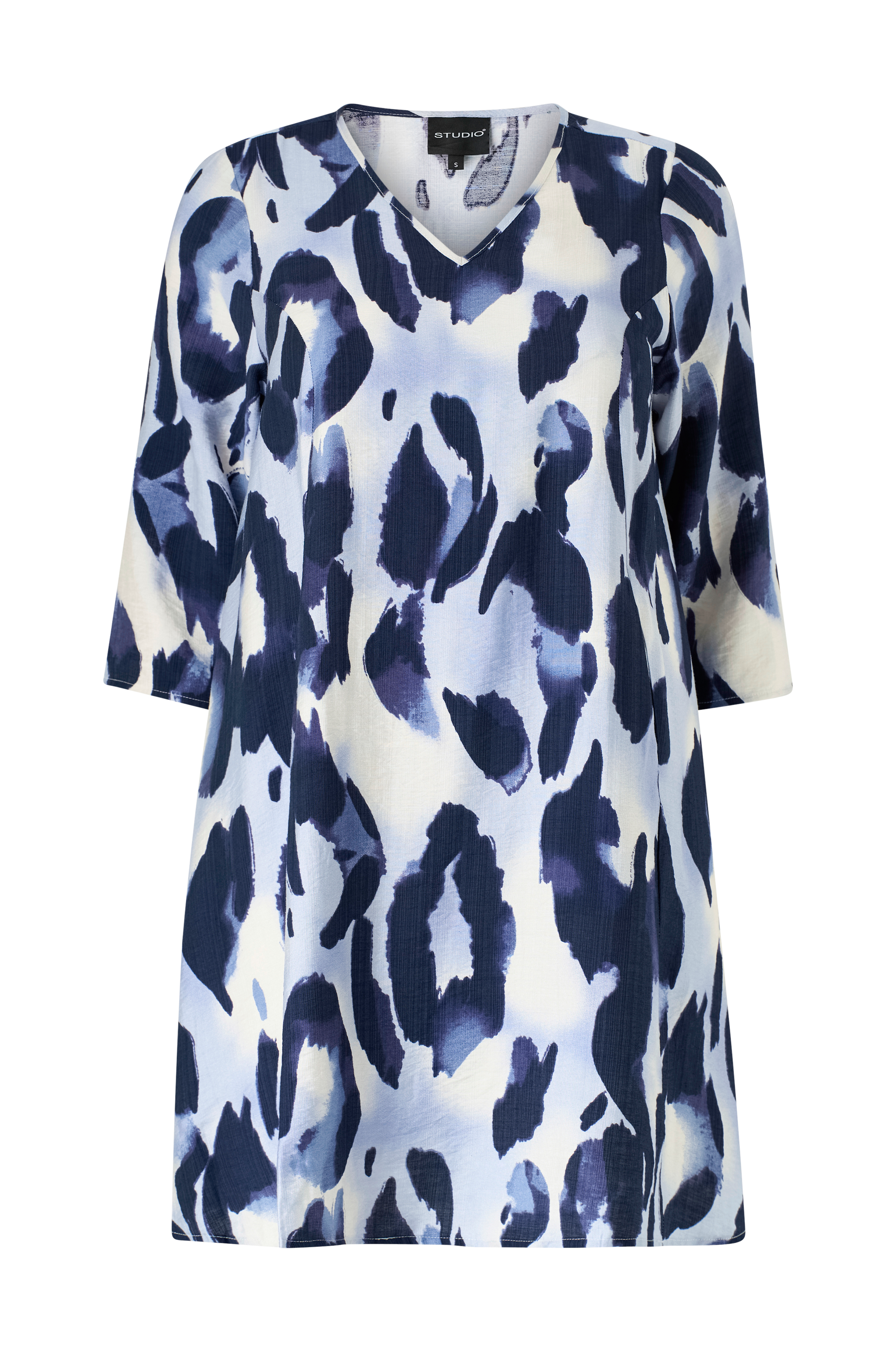 • Mönstrad klänning i viskosmix• V-ringning• 3/4-långa ärmar• Sidfickor• Plusstorlekar• Längd: 94 cm i storlek S