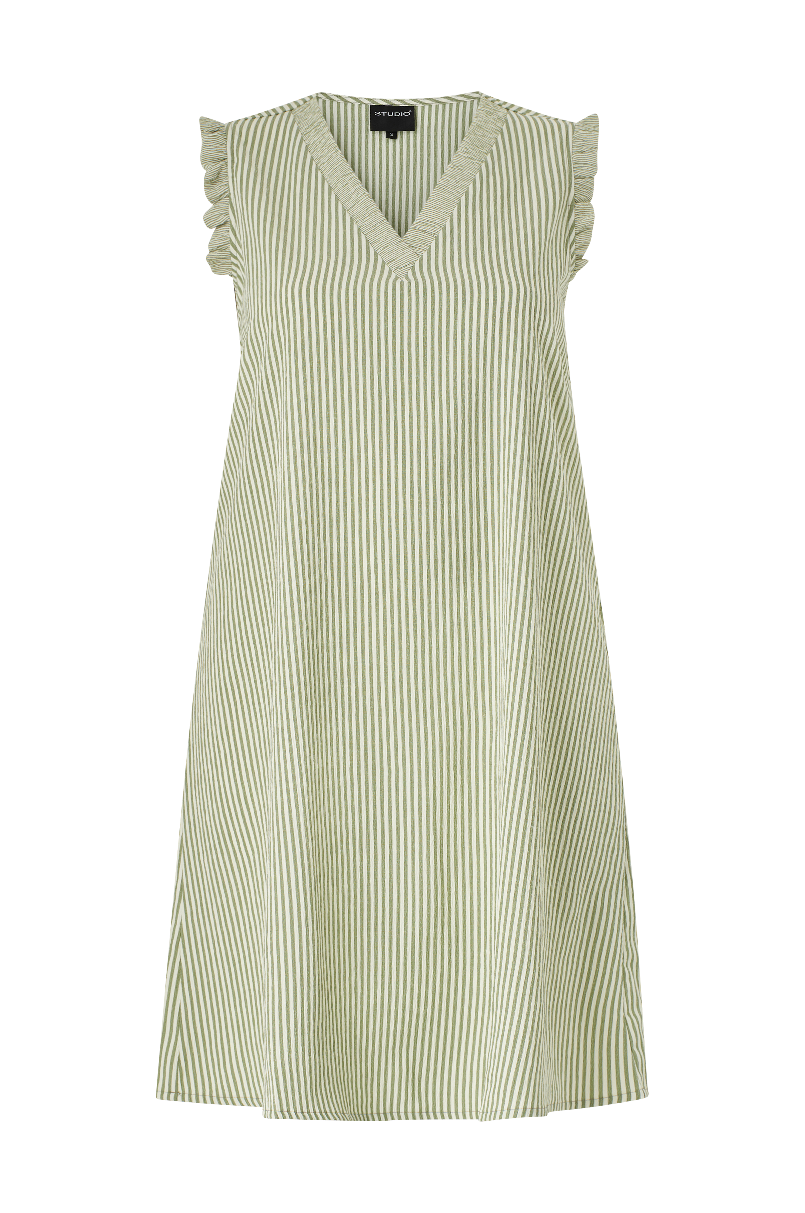 • Utsvängd, ärmlös modell i kräppkvalitet