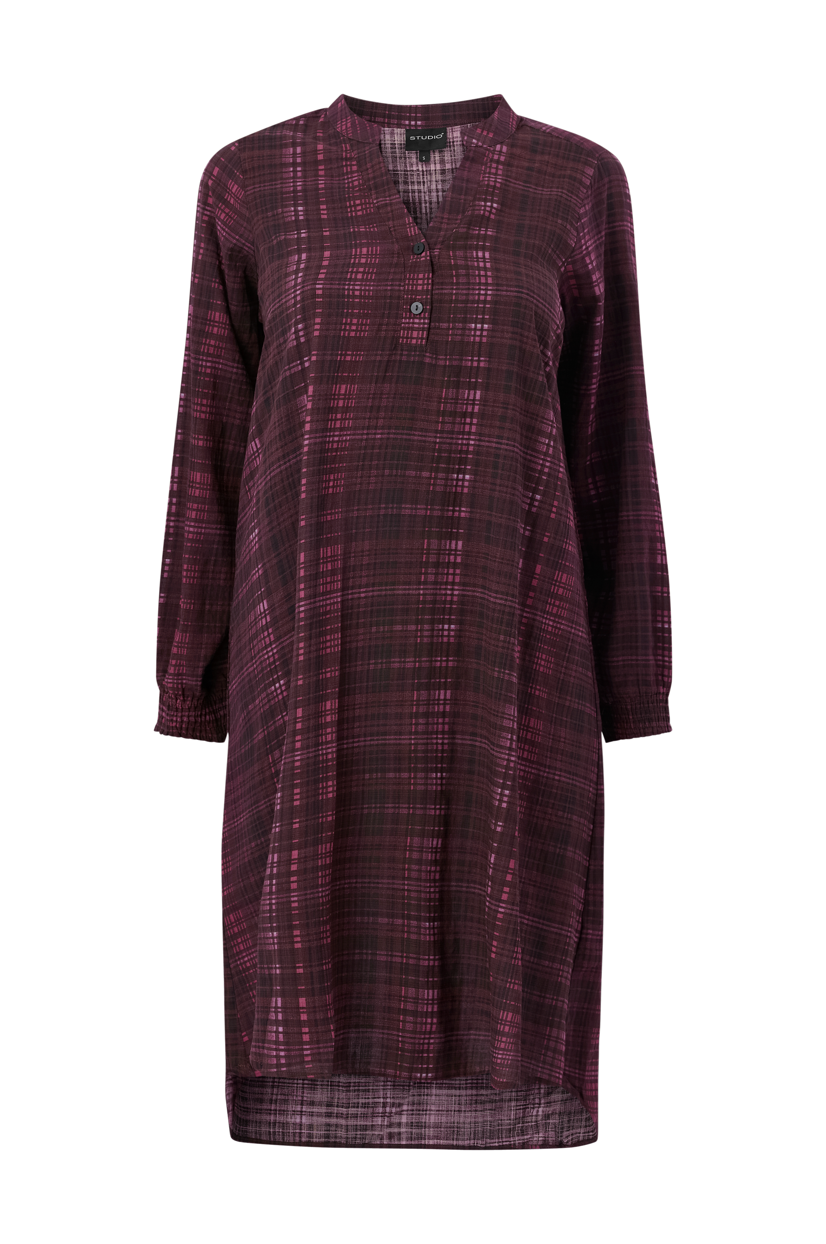 • Klänning i viskosmix• Rund halsringning med sprund fram• Långa ärmar• Smock i ärmsluten• Kort knappslå• Rundad nederkant• Avslappnad passform• Plusstorlekar• Längd: 117 cm i storlek S