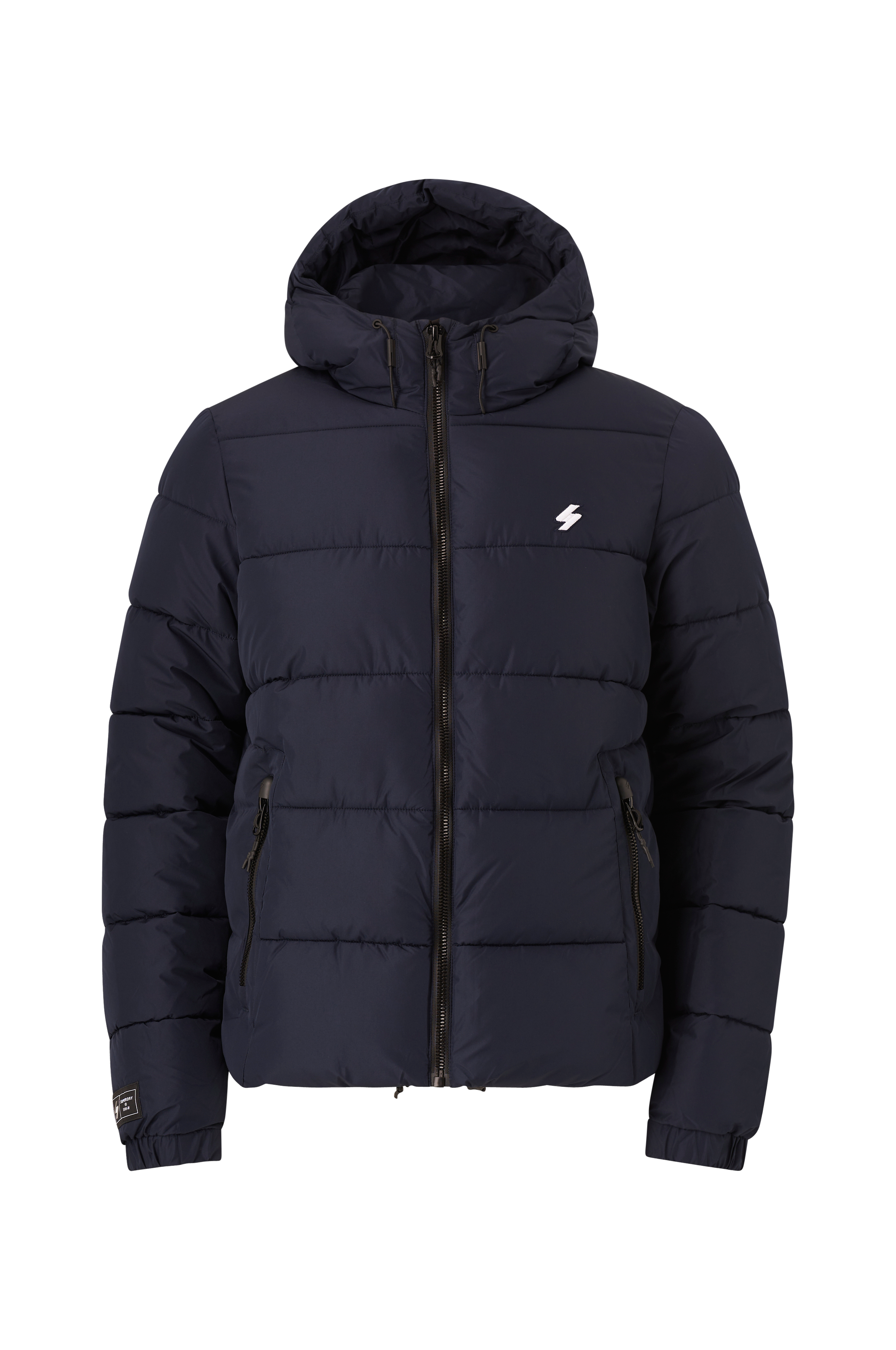 • Quiltad, vadderad jacka• Foder i fleece• Slätt, vävt foder i huvan och i ärmarna• Fast, justerbar huva• Dragkedja• Två fickor med dragkedja• Resår i ärmsluten• Dragsko i nederkanten• Längd: 73 cm i storlek M